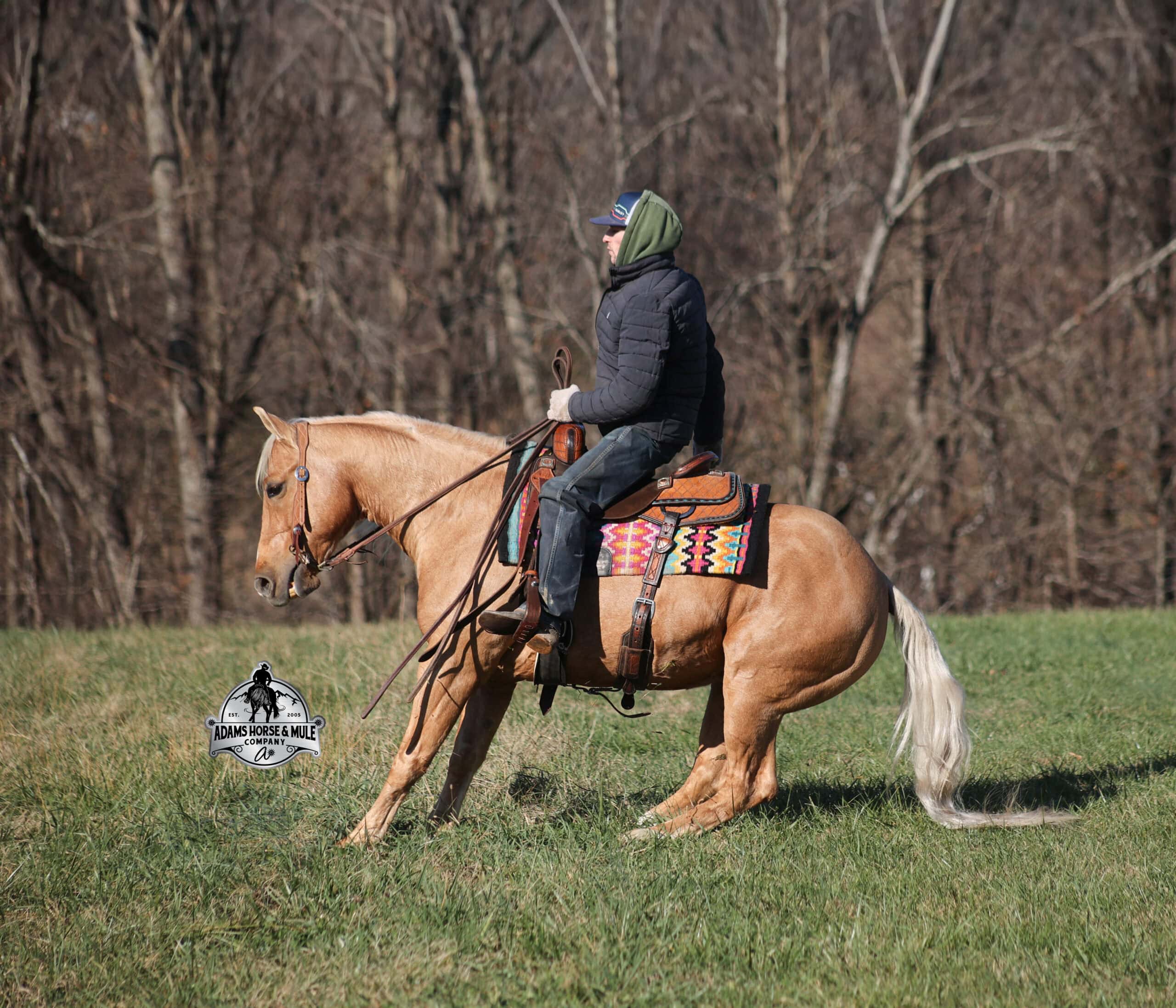 Crashin Bandicoot is one of the coolest and best trained horses that has come through out program over the last 20 years! First of all the name says it all, taking me back to my childhood of playing the video game “Crash Bandicoot”, next beauty is only skin deep but this guy has a coat and heart of gold! Crash is a 2017 model, reg AQHA gelding that is sired by the one and only Dual Smart Rey who has produced offspring that have earned over $13 million. His offspring are known for their cow sense, making outstanding cutting, working cow and rope horses. From there we take a look at his dam and she is sired by the famous One Time Pepto who himself is an earner of over $300K in the NRCHA with offspring earning over $23 Million and counting. Crash is bred as good as they come!!! Early on Crash was started in the cutting and knows how to work a cow, he would be an awesome team sorter as well. The last few years he has been used as a ranch horse. He has pasture roped and doctored, he knows how to hold a cow and work a rope. He has also been hauled to jackpots, traveled to the World Series team ropings, won money and is a 100% finished heel horse! He will stand flat footed and quiet in the box, come out correctly and put you in a position to take a shot at the heels. He stops on a dime and backs up quick to get that rope tight. The lights, loud speakers and crowds do not bother him as he keeps his composure in any situation. He stands a stout built 14.2hh, with that golden coat, flowing white mane and tail, soft eye and calm demeanor, Crash will be your best friend as he is easy going and noncomplicated! He rides low headed on a loose rein, lopes perfect circles, takes his leads, spins both ways and side passes. To say the least he has all the moves and maneuvers that a person could dream of. Crash would be an excellent horse to show in the ranch classes! Obviously, Crash knows his way around the cutting/sorting pen and roping arena, but this pretty boy loves to get dirty out on the trails, packing the kids through the mud! Crash will build your confidence levels out on the trails and make a nervous beginner look like a seasoned pro! He has been trail ridden extensively in multiple states… Steep slopes, deep water, deadfall, boggy mud, all sorts of wildlife… nothing phases him, he is not spooky and he is a master on the trails! Crash will take care of his rider in any situation or terrain. Crash is not spooky and is accustomed to tarps, wind dancers, bull whips and gun fire. If you are looking for a horse to take to the ranch shows, do some cutting, team sorting, one that you can haul to jackpots and rope on or just one that is a steady Eddie, no non-sense trail horse… instead of buying five horses just buy the all in one… Crash Bandicoot! Call Eric 606-308-2461 with any questions.