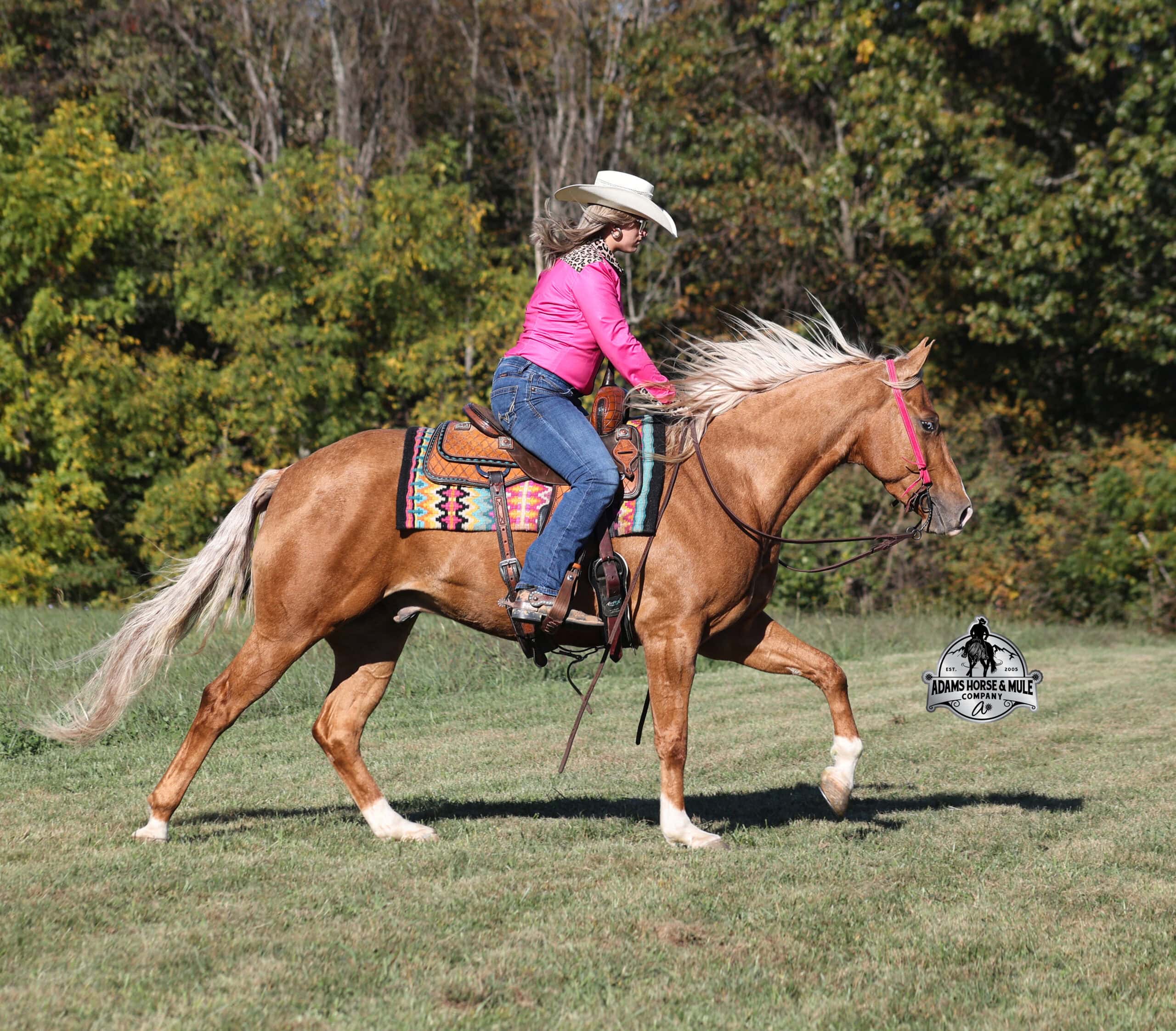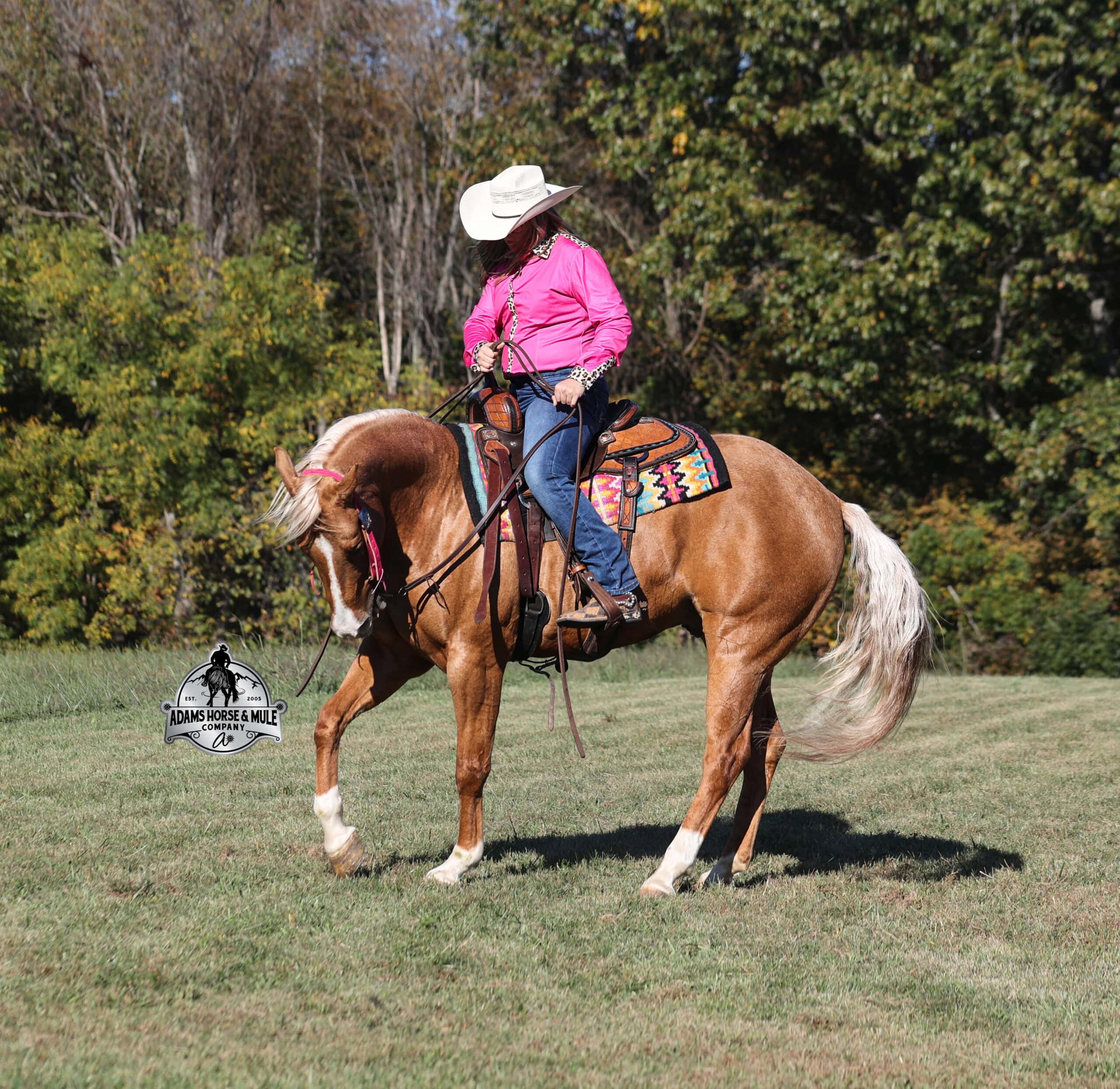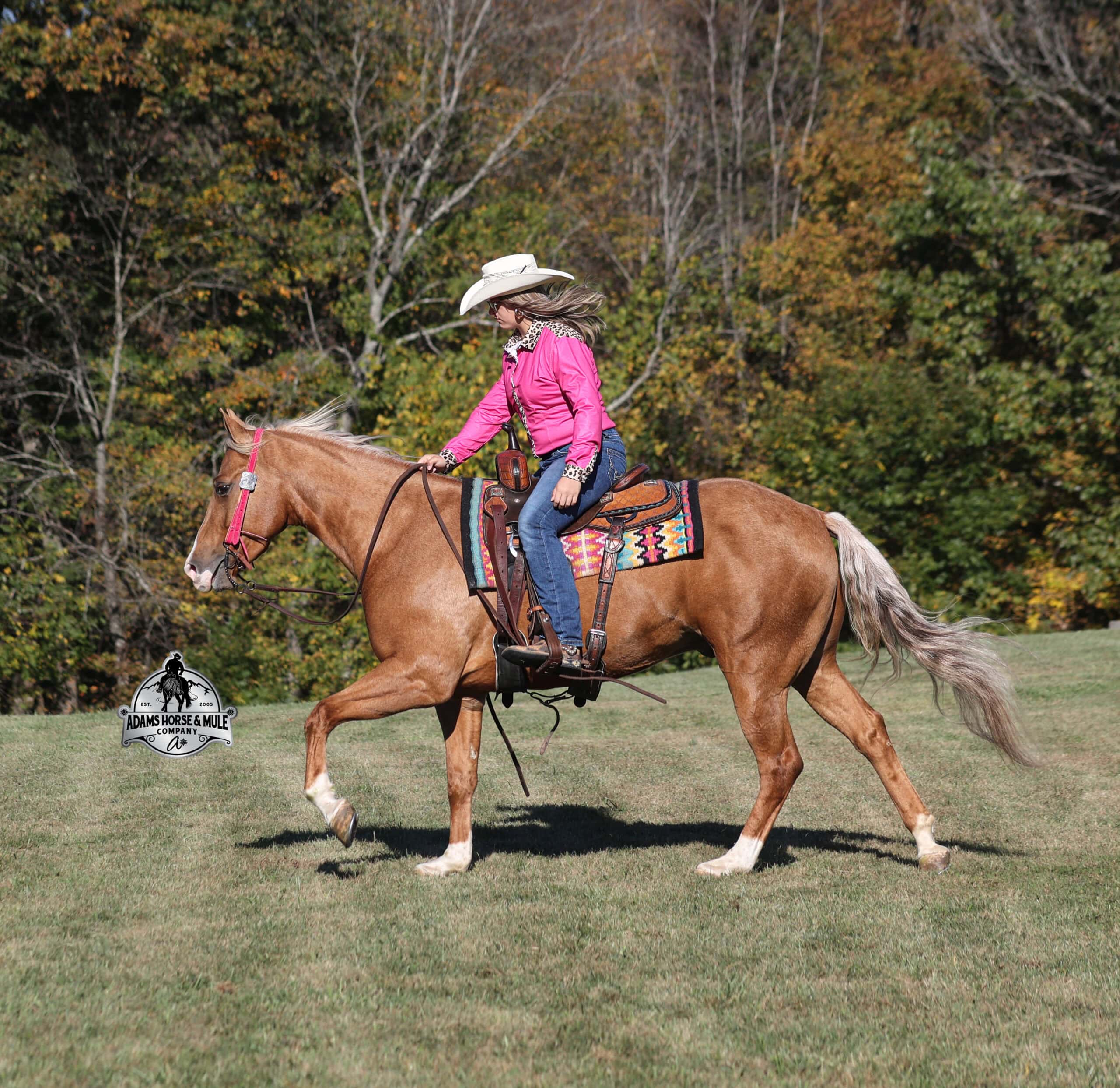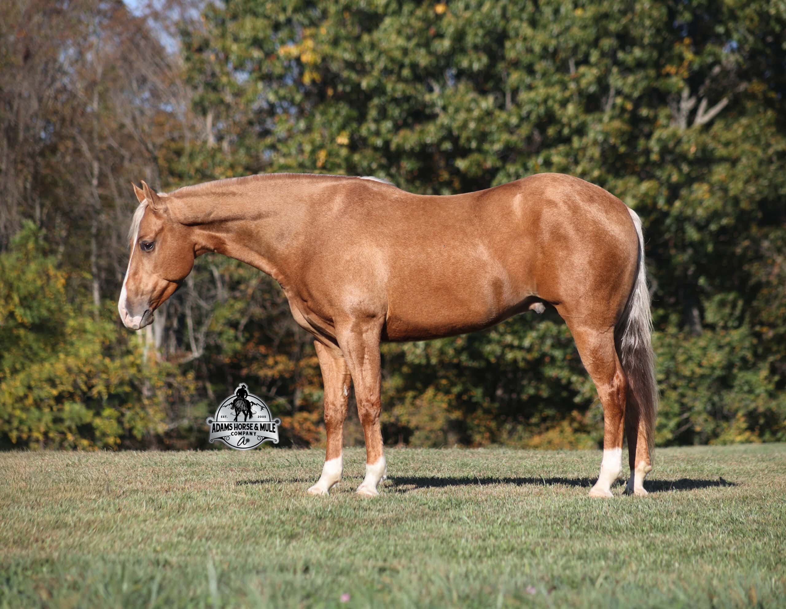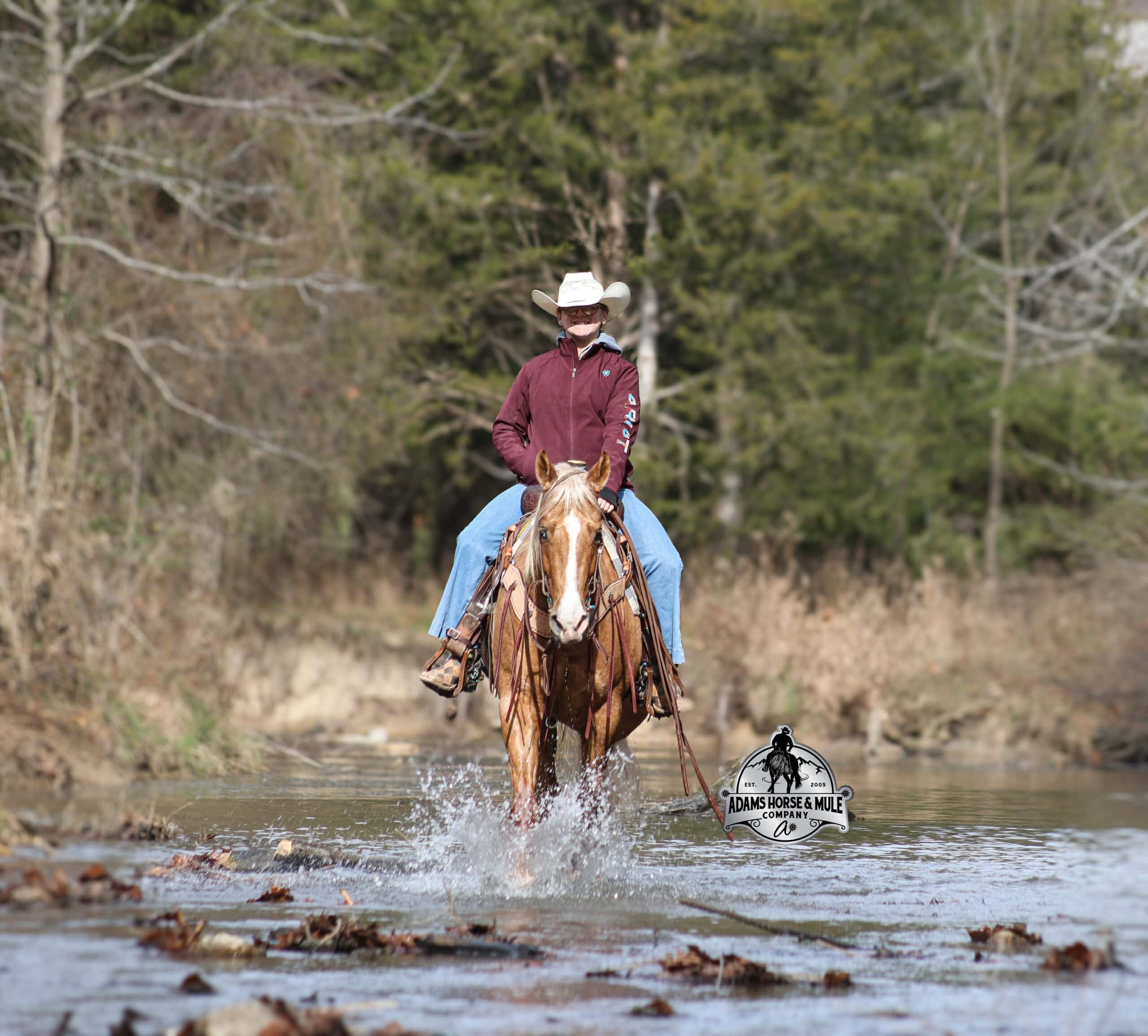 CHEX this guy out!!! Gunners Whimpy Chex is a 2021 model reg AQHA, gelding that is standing 15.1hh with a very stocky build. Gunner has something to offer everyone… if you want pretty, he is wearing a golden coat, has a heart of gold and has four white socks with a thin blaze to go along with it, making a perfect combination of chrome and class. If you are a pedigree person… Gunner has an all-star lineup in his family tree, ML Gunnerito who is sired by the legendary Pale Face Dunnit, Hollywood Dun It, Colonels Smoking Gun, Gallo Del Cielo (AKA Rooster) and Nu Check To Cash… and he only gets more impressive once you get in the saddle! To start with Gunner is trained to lay down on cue. He knows all the reining maneuvers and would be a great horse to put in the ranch shows! He lopes nice circles, slowly on a draped rein, has a great stop, spins both ways, side passes to open/shut gates and has a good reverse. Gunner has a great mind, he is very laid back and loves attention. He enjoys being pampered by the kids whether that be a spa day with a bubble bath or getting glittered up for a photoshoot. Although he is a preppy guy, he is always up for a fun trail ride through the mud and rough country! Gunner has carried the kids through the rough rocky terrain, deep water, thick mud and up/down steep slopes. He has been ridden in several different states, never gets in a hurry and is very sure footed making him a great ride for a beginner type rider. Gunner has been roped off of out of the box on the heel side and he will put you in position to get an honest shot at the heels every time. He has been ridden around the ranch, herded, sorted and pasture roped. Things are always calm and quiet out on the trails and around the ranch but don’t worry, Gunner knows the sound of a roaring rodeo crowd of 3000 people, screaming and cheering as the speakers blare Kid Rock’s song “Born Free”, as he lopes around the arena carrying the flag at the grand entry. While at the rodeo Gunner was been used to sort, pen and load rodeo bulls. The girls also used him to give “pony rides” on at 4 different rodeos. They had all ages of kids and adults stand in line for a ride on their horses. Gunner has been ridden down the highways, through town, the drive thru, by Walmart and he will be traffic safe! He has been under English tack and will go over the rails with ease. Gunner is not spooky and has been around tarps, wind dancers, bull whips and gun fire. Gunner has been Movie Star good looks, an All-Star pedigree, Rideability, Safe, Smart, Experienced, Versatile… yes he certainly does CHEX all of the boxes!!! Gunner is available to ride and see in Mt. Vernon, KY until the week of the sale Feb. 16-21. Call for more info or if you have any questions 606-308-2461.