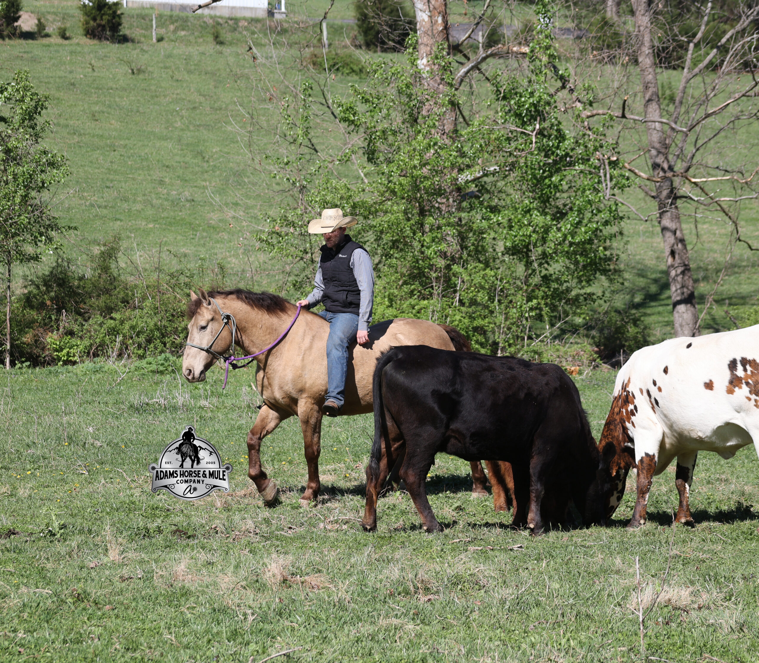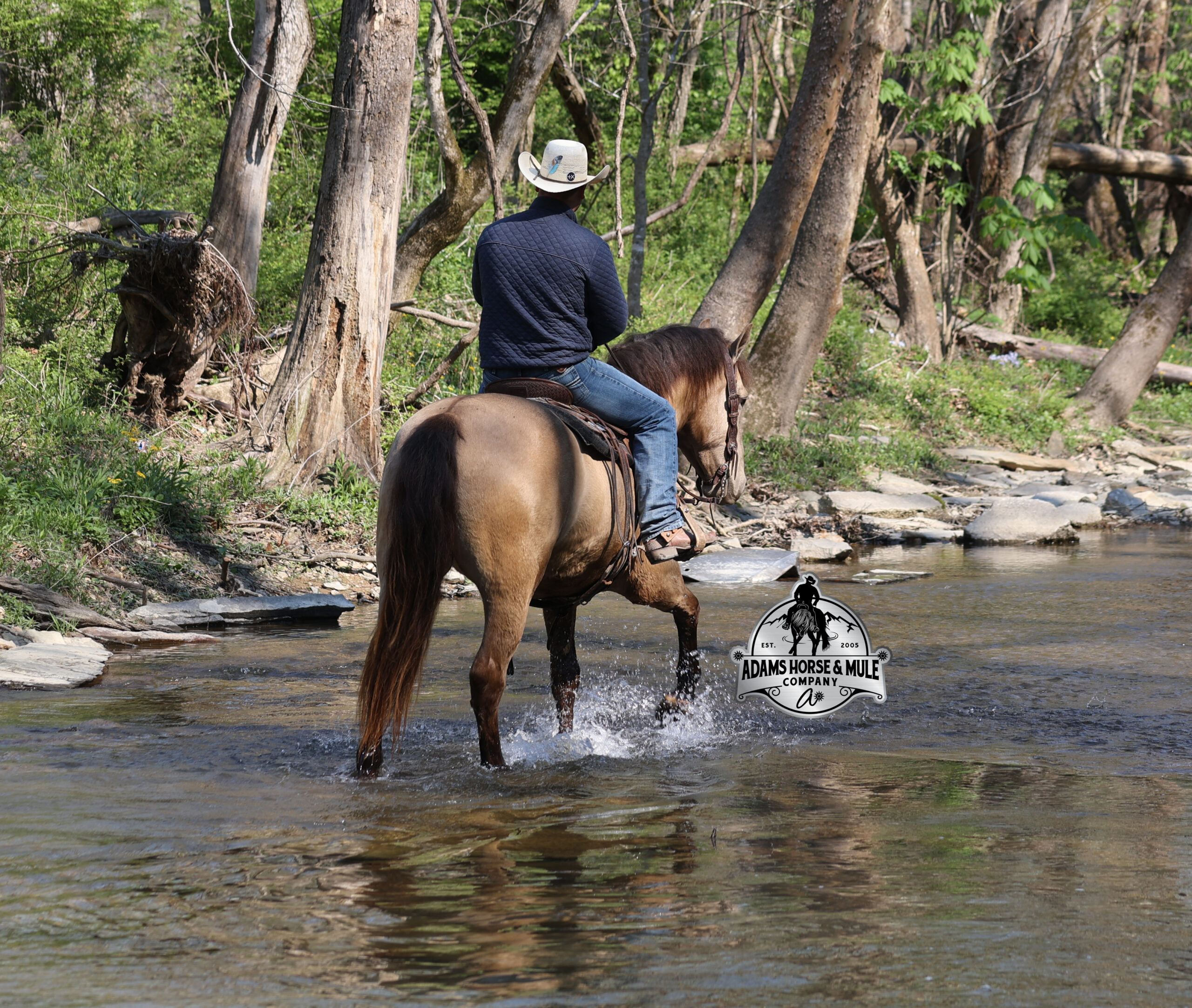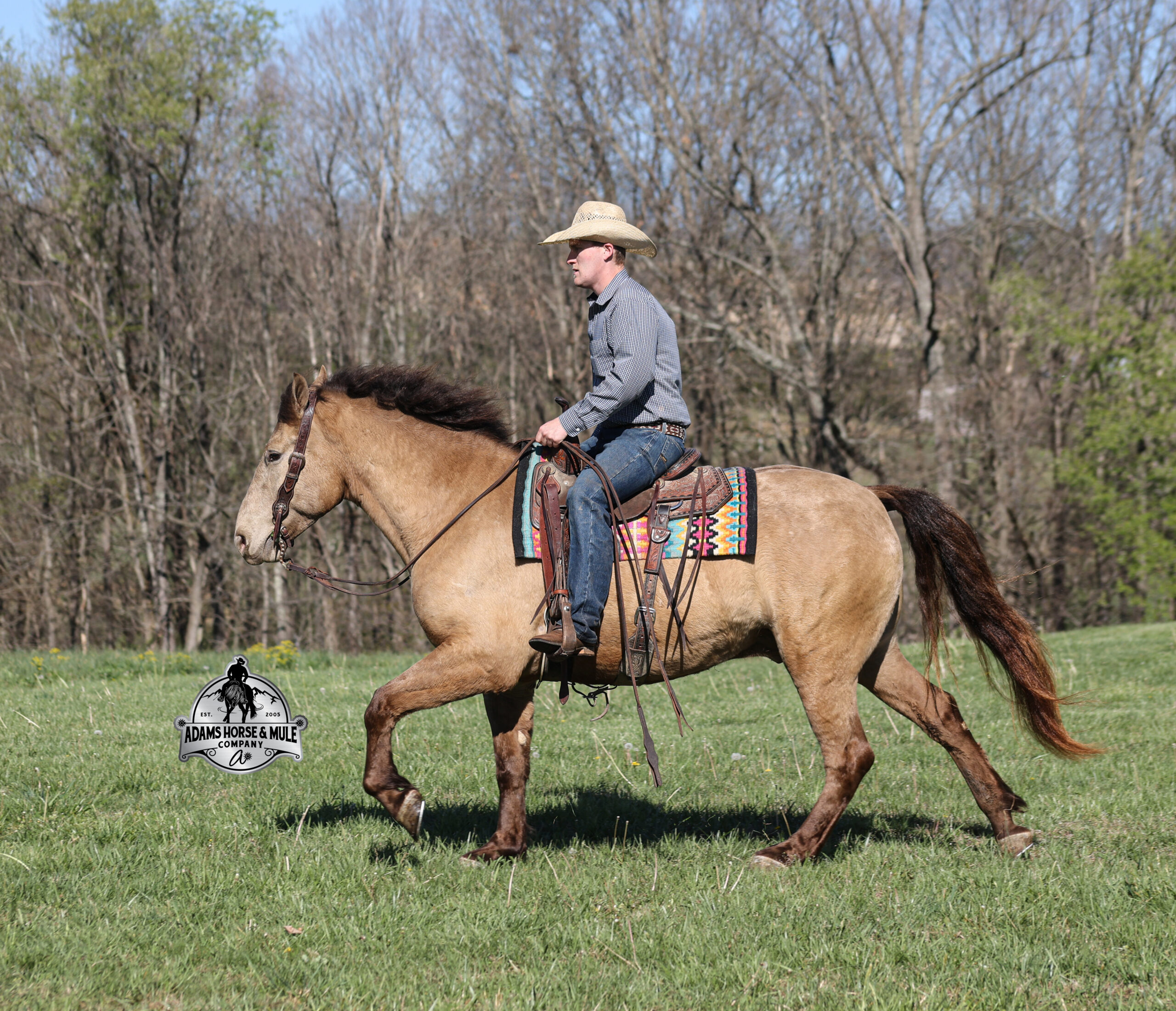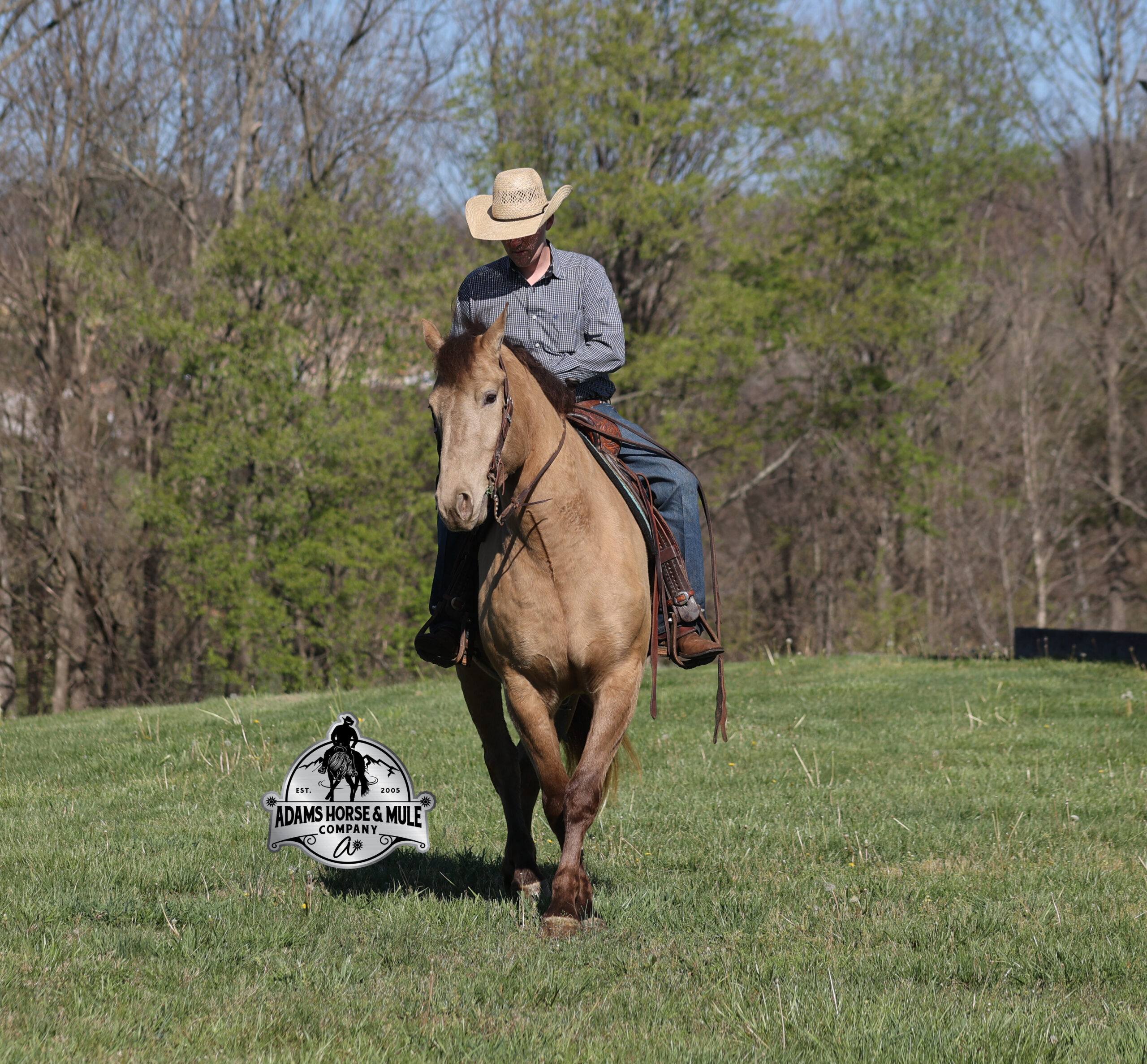 It’s time for a celebration… pop the champagne with this magnificent 15.2H+, ULTRA RARE Champagne Draftcross gelding! He is 6 years old and is VERY sturdy built. Jagger is one that is not only a rare color but rarely do we see one that is this beginner safe, a total confidence builder and one that is the PERFECT horse for the ENTIRE Family! He has been ridden by all ages including our kids. Jagger is one that does a little bit of everything… He’s been ridden around the ranch, checked cows and rode fences. Jagger is a trail riding machine!!! He is never in a hurry as he eases along down the trails, he will cross creeks, ditches, logs and navigate rough rocky areas. He picks the safest route and takes his time in tight situations. He has been exposed to all kinds of wildlife and has even packed will game out of the mountains. He is safe in traffic whether that be trucks or cars. He has a nice jog, his lope is smooth as well and he lopes nice circles! He is very well harness broke, pulls all farm implements and carriages as well. Jagger has been ridden English and geos over the rails with ease. This one horse that we can never say enough good things about and after he becomes part of your family your will agree! Feel free to call Eric 606-308-2461 with any questions!