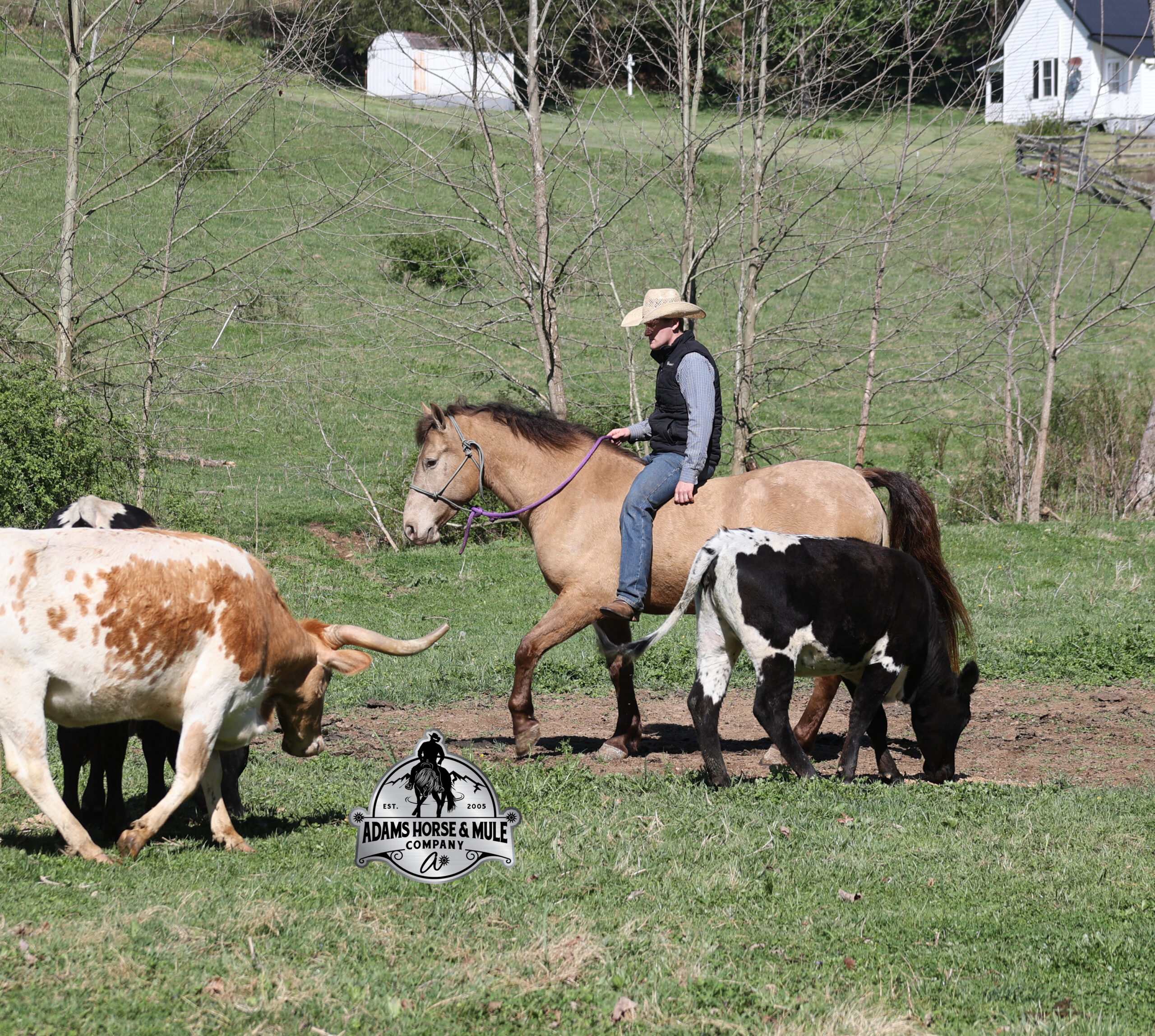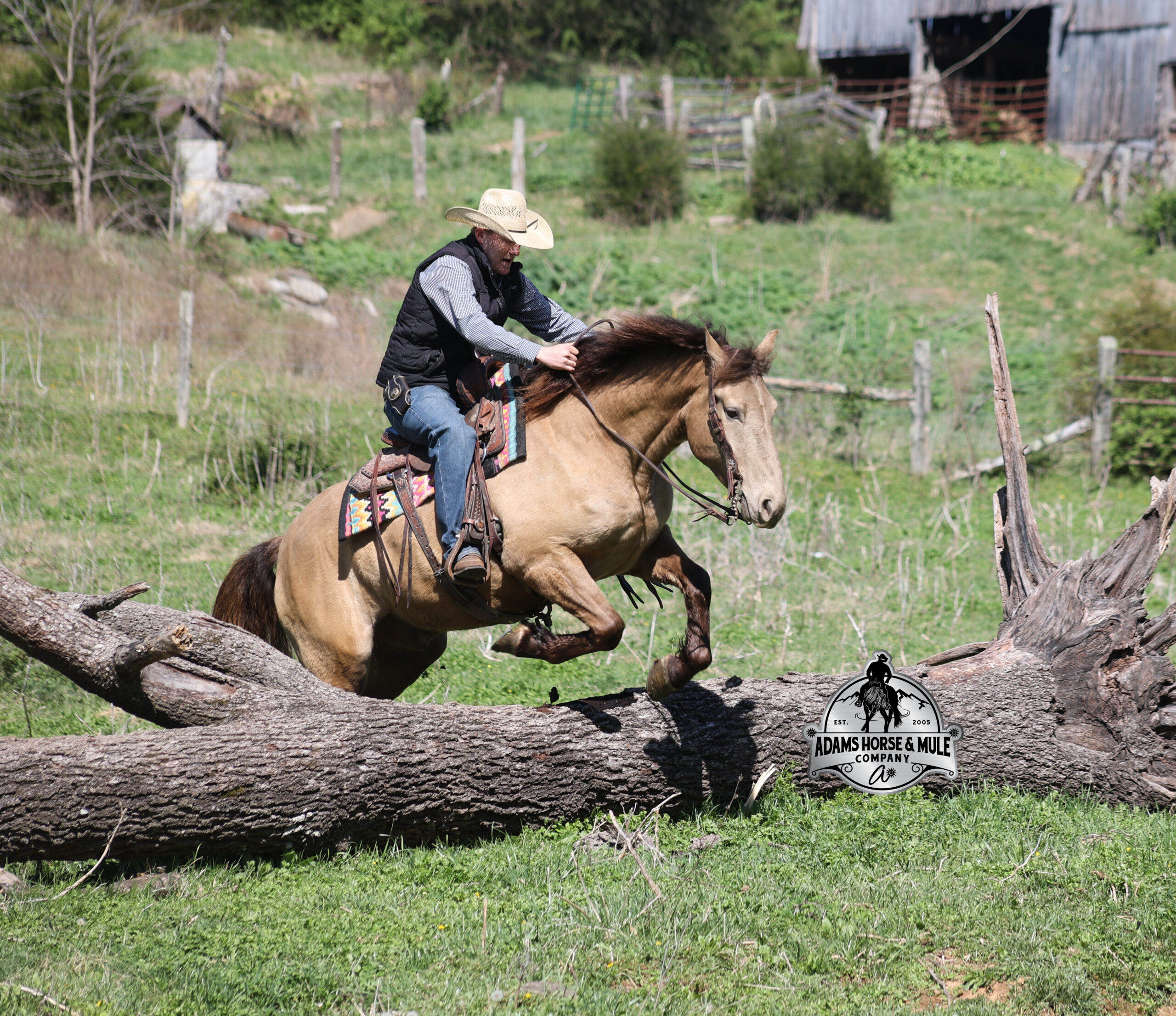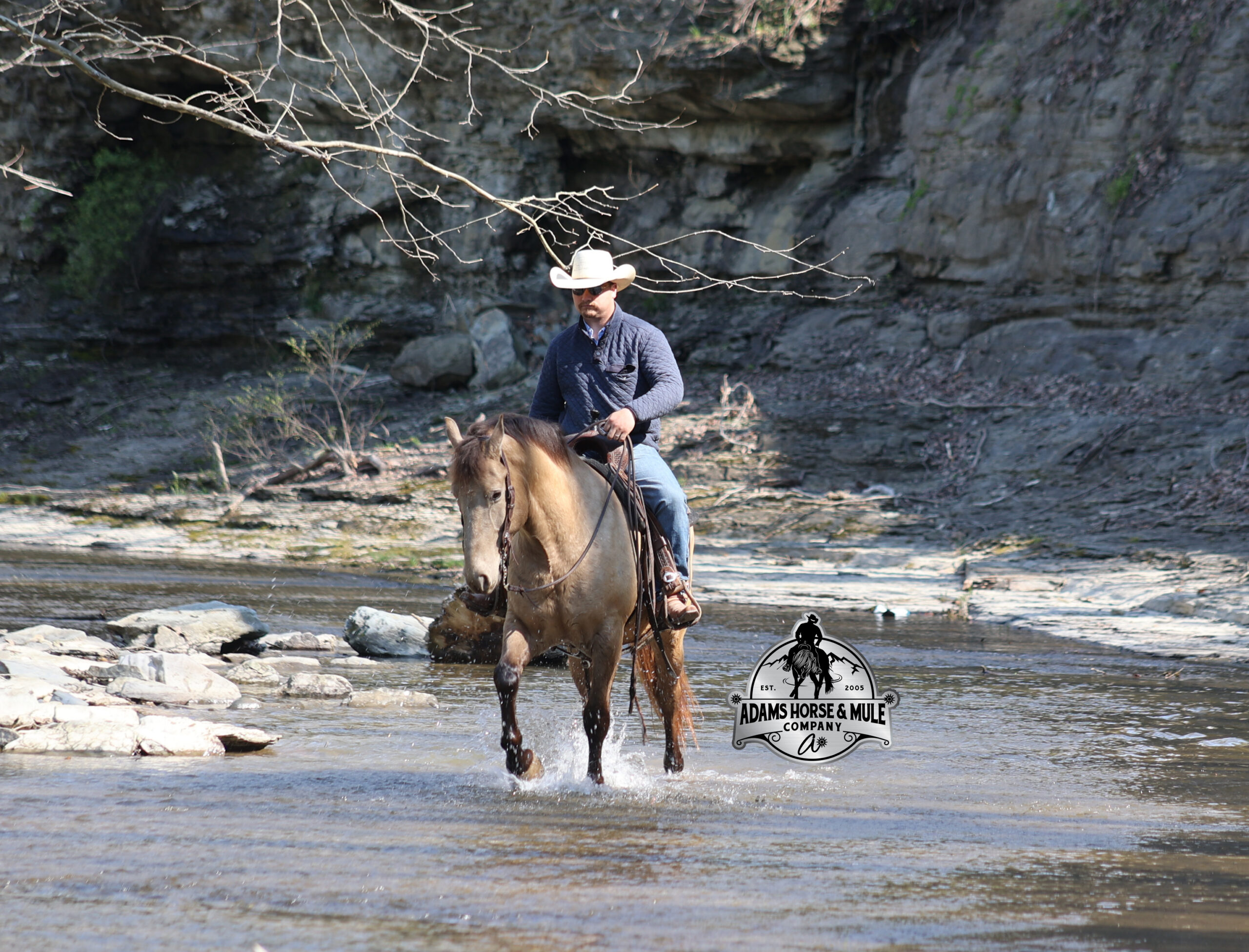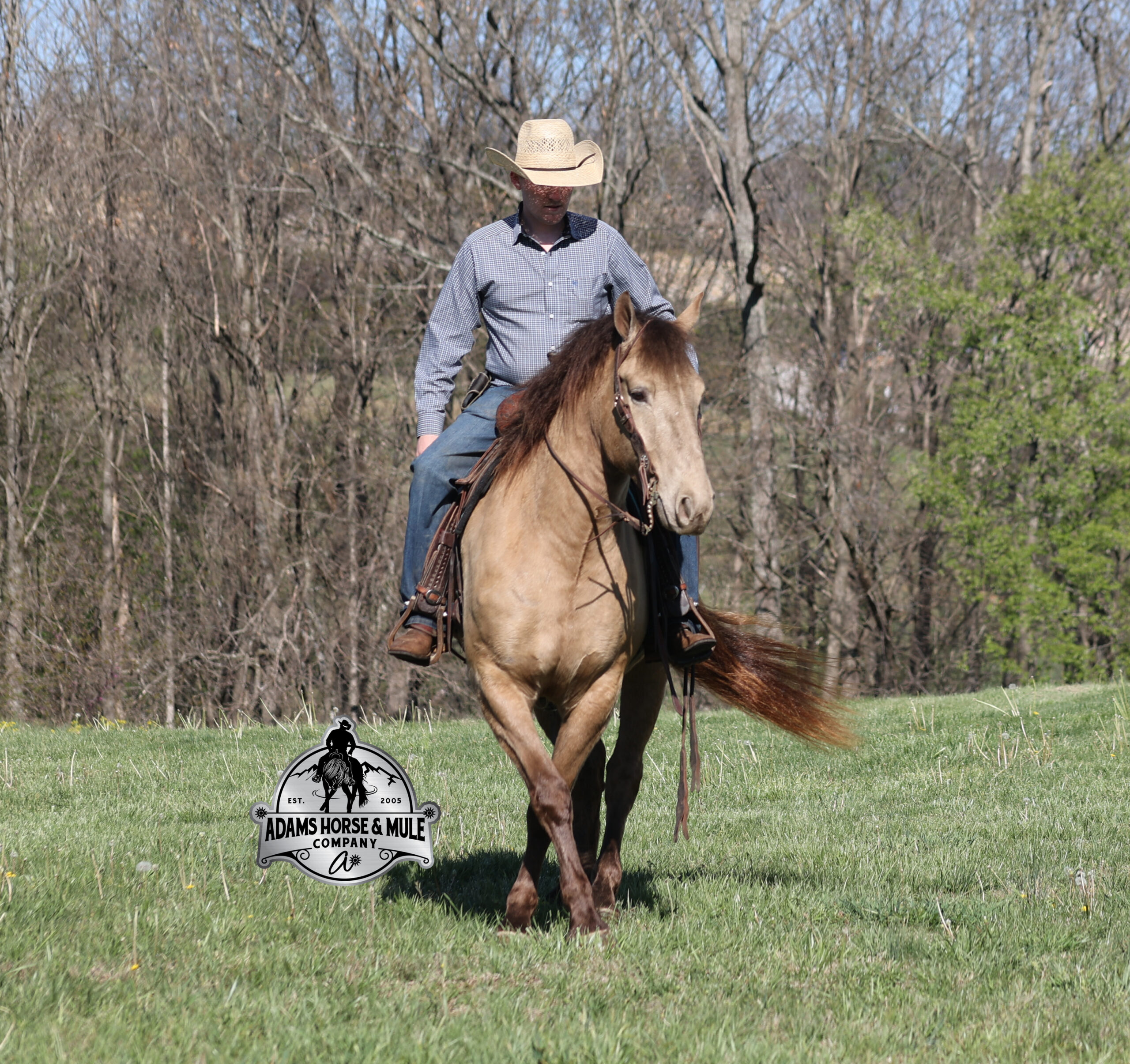 It’s time for a celebration… pop the champagne with this magnificent 15.2H+, ULTRA RARE Champagne Draftcross gelding! He is 6 years old and is VERY sturdy built. Jagger is one that is not only a rare color but rarely do we see one that is this beginner safe, a total confidence builder and one that is the PERFECT horse for the ENTIRE Family! He has been ridden by all ages including our kids. Jagger is one that does a little bit of everything… He’s been ridden around the ranch, checked cows and rode fences. Jagger is a trail riding machine!!! He is never in a hurry as he eases along down the trails, he will cross creeks, ditches, logs and navigate rough rocky areas. He picks the safest route and takes his time in tight situations. He has been exposed to all kinds of wildlife and has even packed will game out of the mountains. He is safe in traffic whether that be trucks or cars. He has a nice jog, his lope is smooth as well and he lopes nice circles! He is very well harness broke, pulls all farm implements and carriages as well. Jagger has been ridden English and geos over the rails with ease. This one horse that we can never say enough good things about and after he becomes part of your family your will agree! Feel free to call Eric 606-308-2461 with any questions!