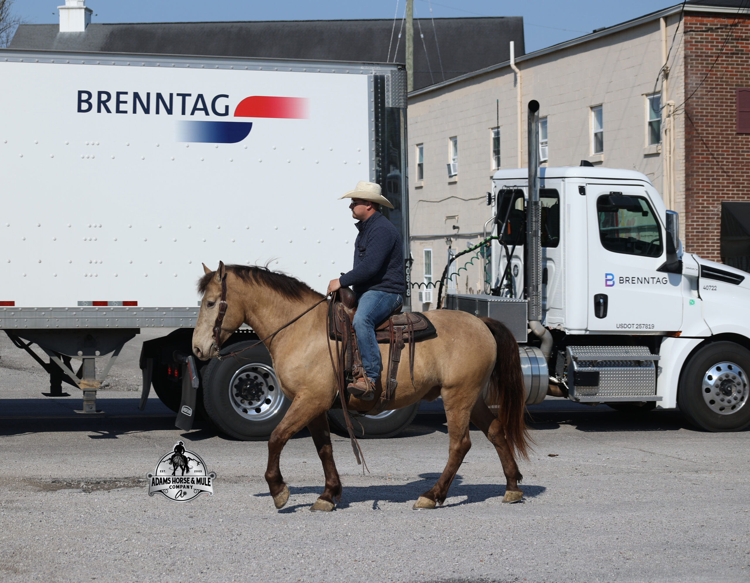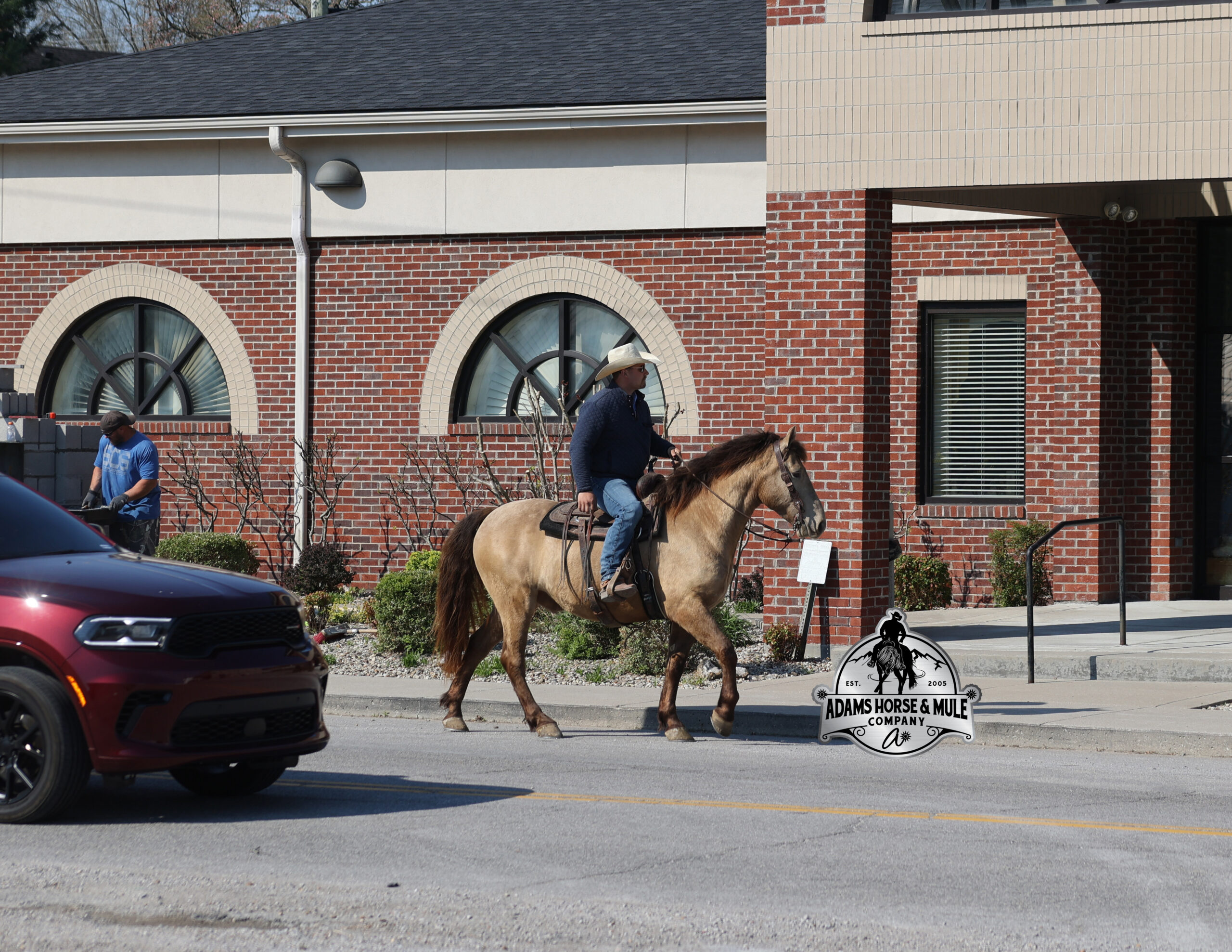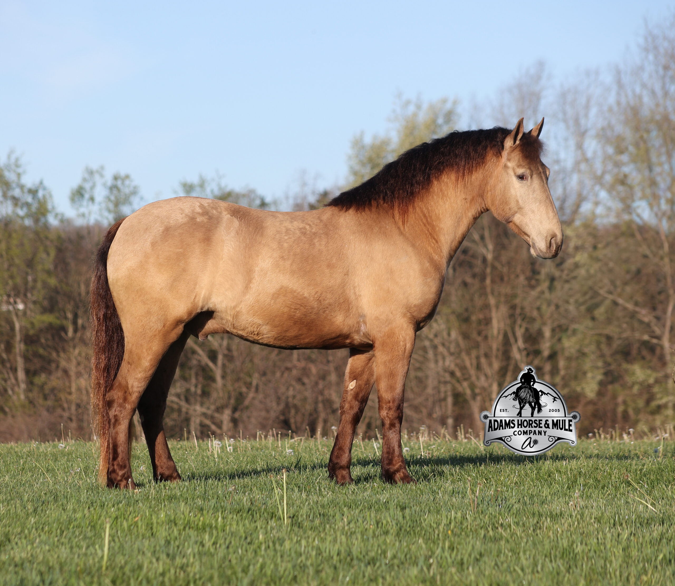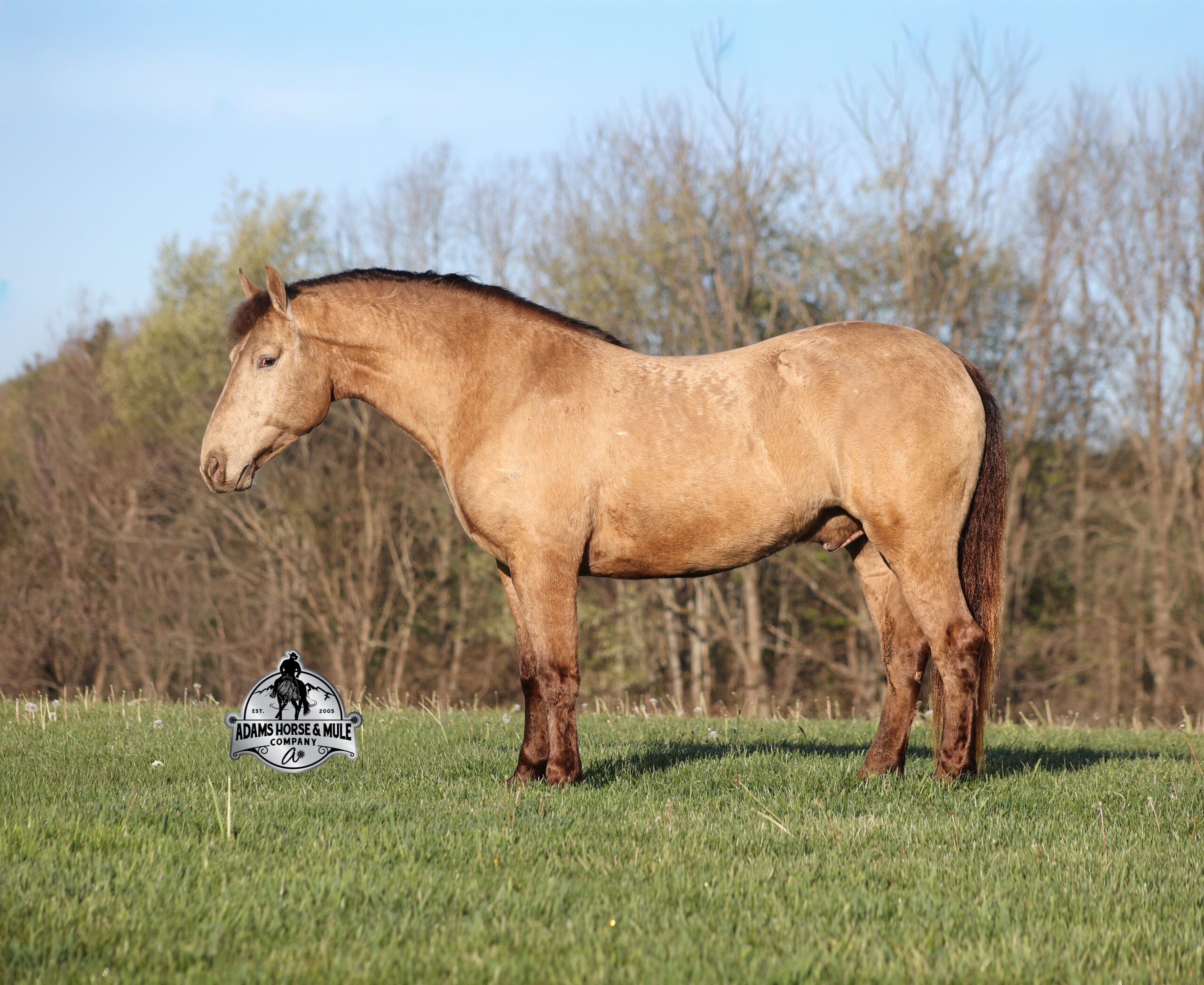It’s time for a celebration… pop the champagne with this magnificent 15.2H+, ULTRA RARE Champagne Draftcross gelding! He is 6 years old and is VERY sturdy built. Jagger is one that is not only a rare color but rarely do we see one that is this beginner safe, a total confidence builder and one that is the PERFECT horse for the ENTIRE Family! He has been ridden by all ages including our kids. Jagger is one that does a little bit of everything… He’s been ridden around the ranch, checked cows and rode fences. Jagger is a trail riding machine!!! He is never in a hurry as he eases along down the trails, he will cross creeks, ditches, logs and navigate rough rocky areas. He picks the safest route and takes his time in tight situations. He has been exposed to all kinds of wildlife and has even packed will game out of the mountains. He is safe in traffic whether that be trucks or cars. He has a nice jog, his lope is smooth as well and he lopes nice circles! He is very well harness broke, pulls all farm implements and carriages as well. Jagger has been ridden English and geos over the rails with ease. This one horse that we can never say enough good things about and after he becomes part of your family your will agree! Feel free to call Eric 606-308-2461 with any questions!