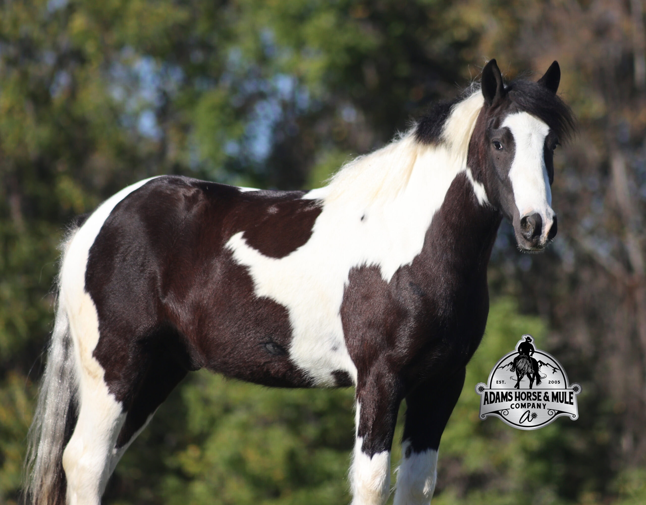 Lakota is standing around 14h, he is 5 years old, a Gypsy Vanner Cross, Gelding and if you are looking for a horse that will bring countless smiles, miles of memories and nothing but good times in the saddle… then meet Lakota. He has been our 7-year-old boys favorite ride all summer long, and he has been tested over and over again, passing with flying colors every time! This guy loves attention and likes to be pampered! From braids to baths, he loves his time with his kids! He is gentle enough for the kids to ride but stout enough to comfortably carry a smaller adult. Lakota is a phenomenal trail horse and goes anywhere that he is asked. He has been ridden up/down steep slopes, across creeks, ditches, deadfall, rough rocky areas… you name it, and he can handle it. He rides with confidence, will go out alone, will ride in the front or back of the group and leaves the barn with no issues. He is traffic safe and has been ridden through town. He lopes nice circles, takes the correct leads, has a good stop and is easy to operate. In addition to riding western Lakota has been ridden English and has been over jumps. He has been ridden around the ranch and through the cows. Lakota is a great horse for the whole family to love and enjoy for years to come! For more info call Eric 606-308-2461.