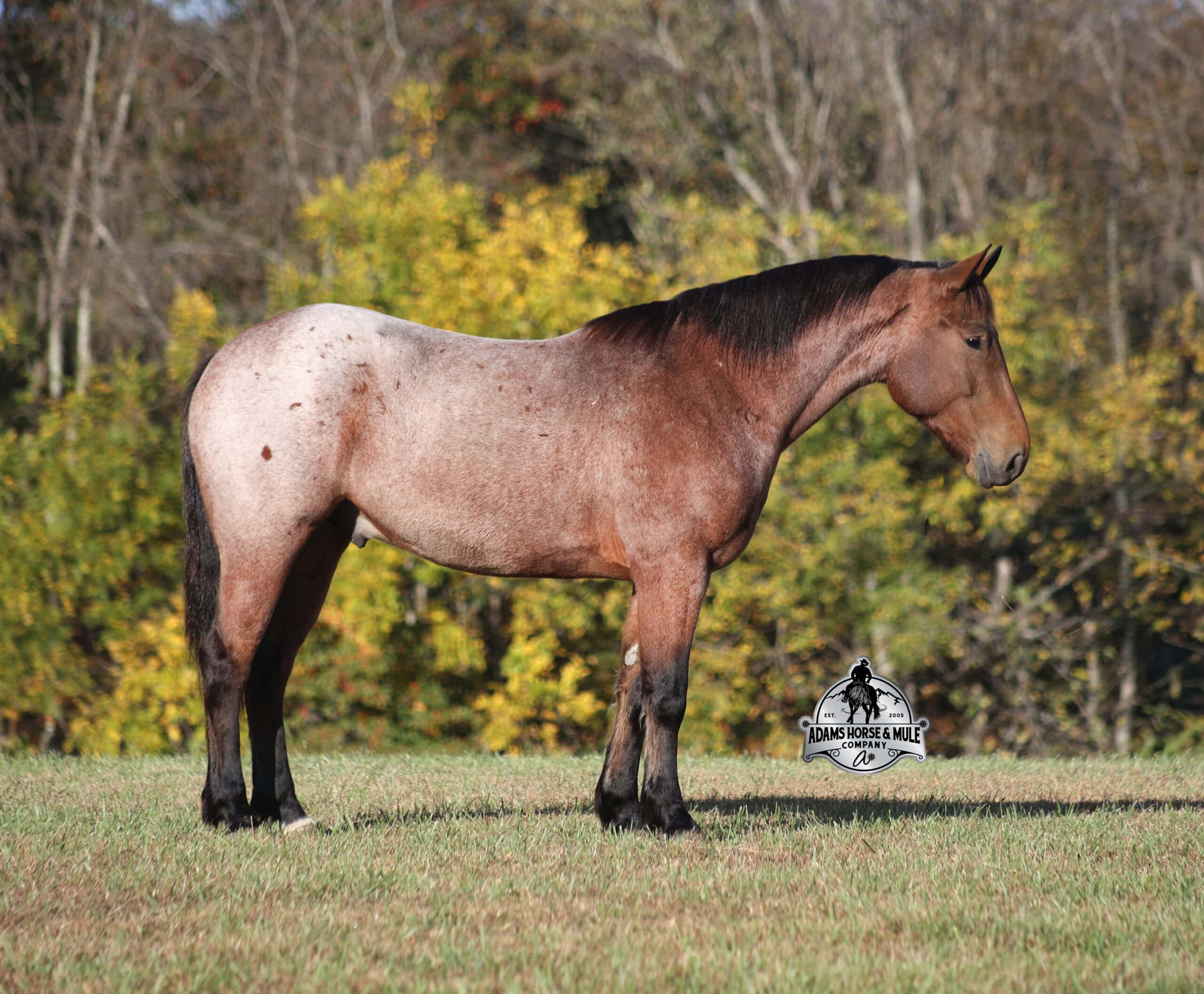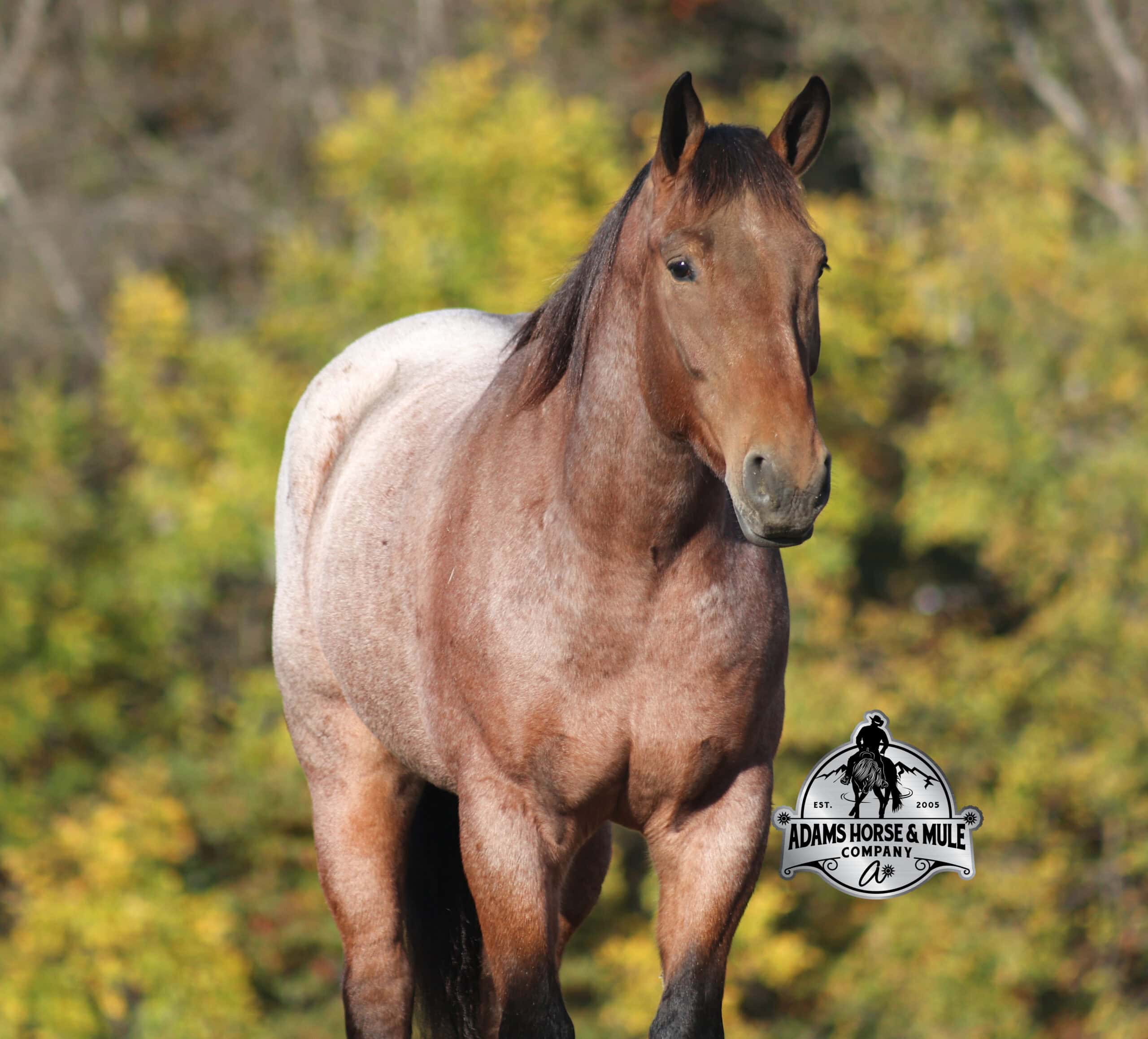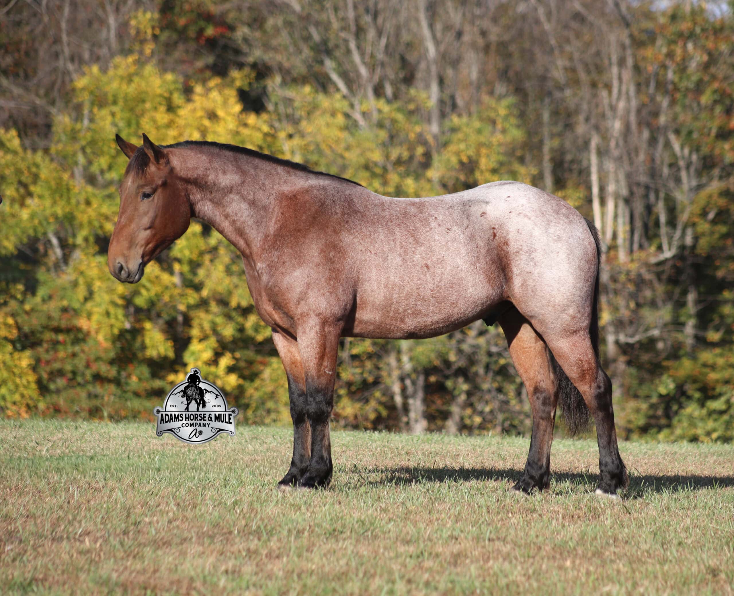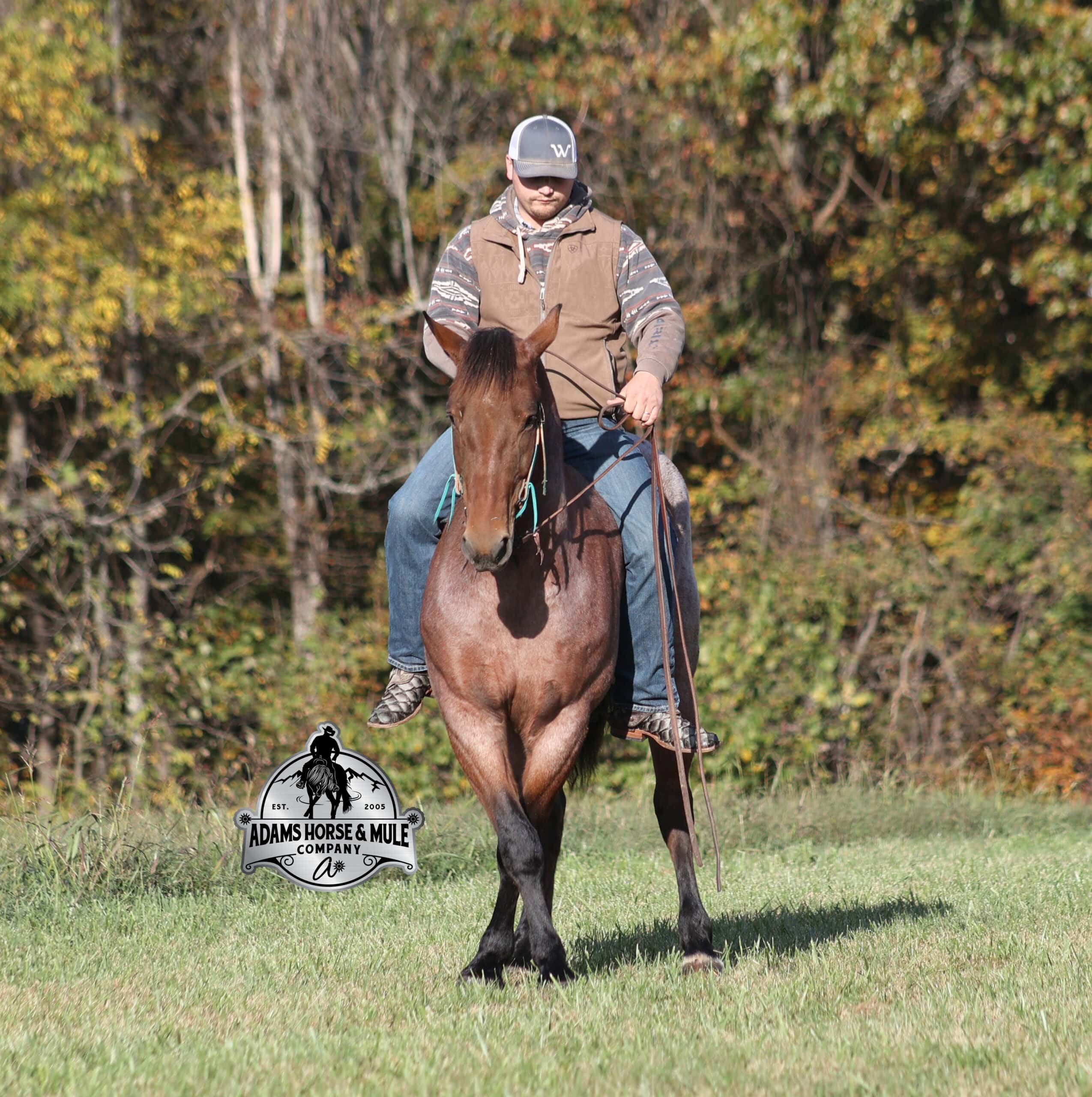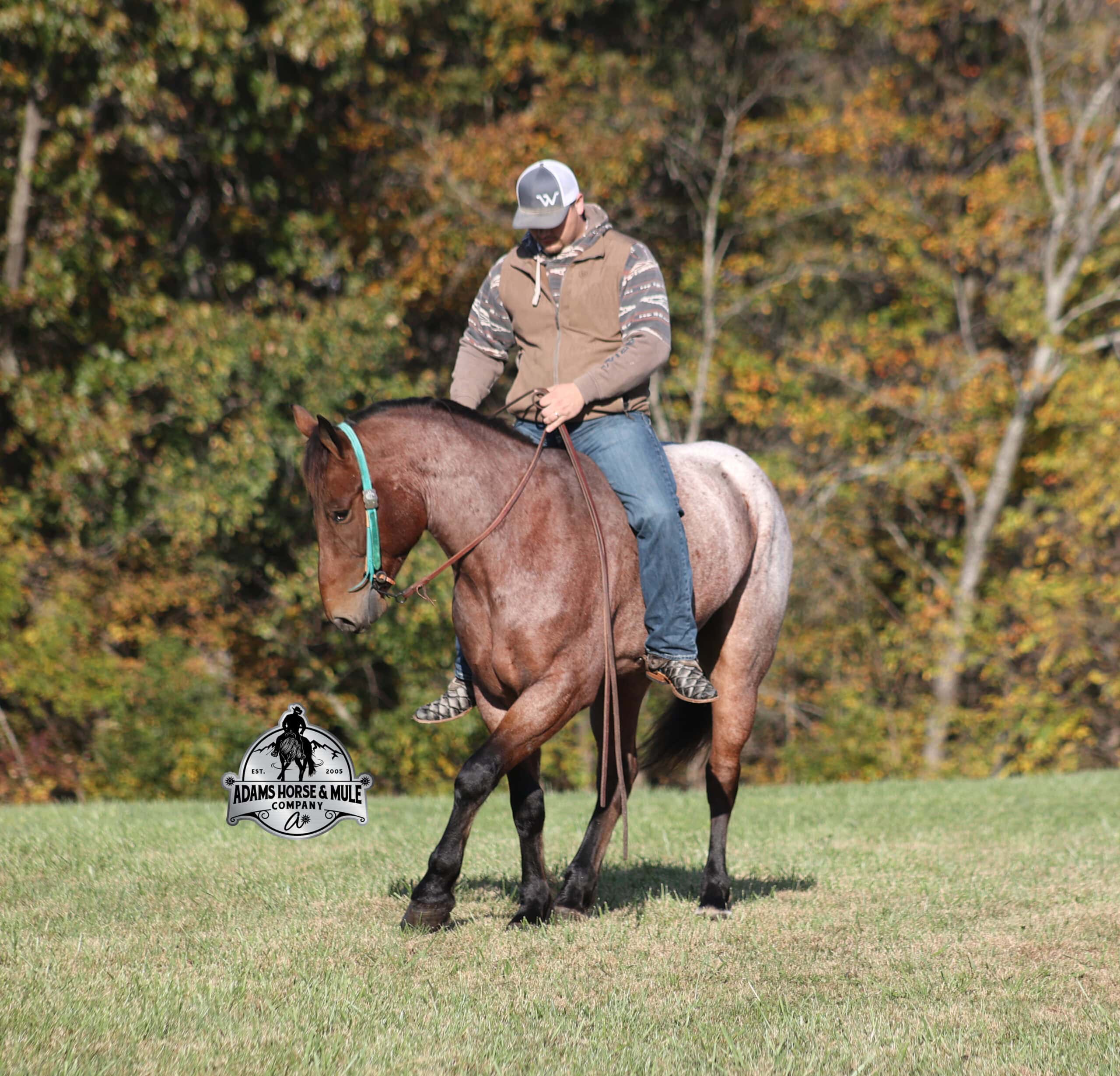 Meet Reno, a super cool, stout built, bay roan, draftcross gelding that is standing around 15.2hh. He will weigh 1250lbs, he is 5 years old and he has all the good looks, and (the best part) the mindset that anyone could ask for! Not only does he look cool, he has all of the other boxes checked as well… he is Mr. Personality, as friendly as they come, loves attention and is very calm natured. Reno has been ridden by every member of our family all the way down to our 6 year old and he will be the perfect horse for the whole family to enjoy! He is the same horse whether ridden daily or if he is left off for a couple months. He has been ridden around the ranch, checked cows and pushed them around. Reno is great on trails and he will cross creeks, ditches, logs and navigate rough rocky areas. He has a smooth jog, one of the slowest and softest lopes that you will find, a good stop and reins around as well! He has been exposed to all kinds of wildlife such as deer or turkey and will go anywhere that he is asked too. He has been ridden many miles in the mountains of Eastern Kentucky and encountered every obstacle possible on the trail. He will go up or down even the steepest slopes, across deep creeks, over downed trees, and over all types of rough terrain while still being sure footed. He is also harness broke and has been used in all types of farm machinery. Reno is not cinchy, cold backed, does not crib or weave. If you need your confidence boosted, Reno is the one for you!!! Feel free to call Eric 606-308-2461 with any questions.