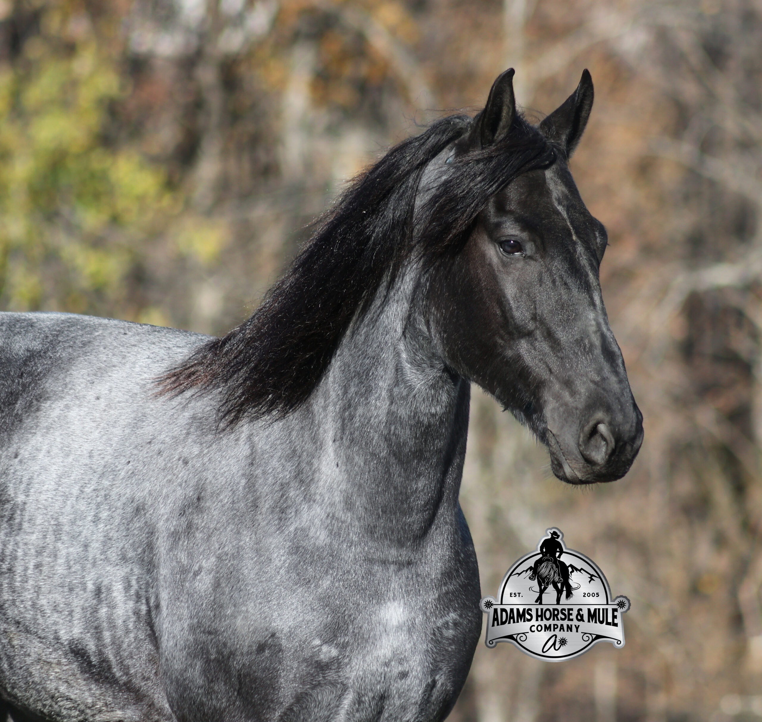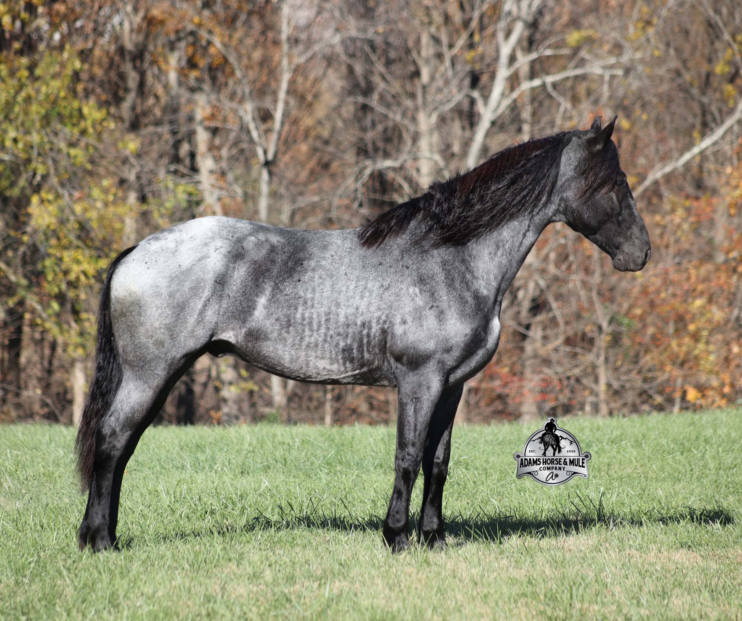 Smart and Clevor, this guy has it all! RRS Clever Trevor is the big, stout, true blue roan registered Friesian Sport Horse Gelding!!! He is a 16h+ and is a 2018 model. Travis he is a very smooth mover as he, takes the correct leads, lopes nice circles, reins around and stops with ease! Travis is safe for any level or any age of rider!! He has been ridden by our kids with no issues. Travis has been ridden inside and out. He is good in the arena, he has been ridden down the highways and he is traffic safe. Travis is great on trails and he will cross creeks, ditches, logs and navigate rough rocky areas. He has been exposed to all kinds of wildlife such as deer or turkey and will go anywhere that he is asked too. He has been ridden many miles in the mountains of Eastern Kentucky and encountered every obstacle possible on the trail. He has been on several week-long camping trips. He hauls well and picketline ties also. He will go up or down even the steepest slopes, across deep creeks, over downed trees, and over all types of rough terrain while still being sure footed. Travis has no bad habits! In addition to riding, Travis has been drove single, double and in a 4 horse hitch pulling an old west stage coach! He has been worked in all types of farm machinery, has been drove through town, in parades and at rodeo venues. Travis’s mate (Trevor) is also available. You don’t want to miss this special horse! Feel free to call Eric 606-308-2461 with any questions.