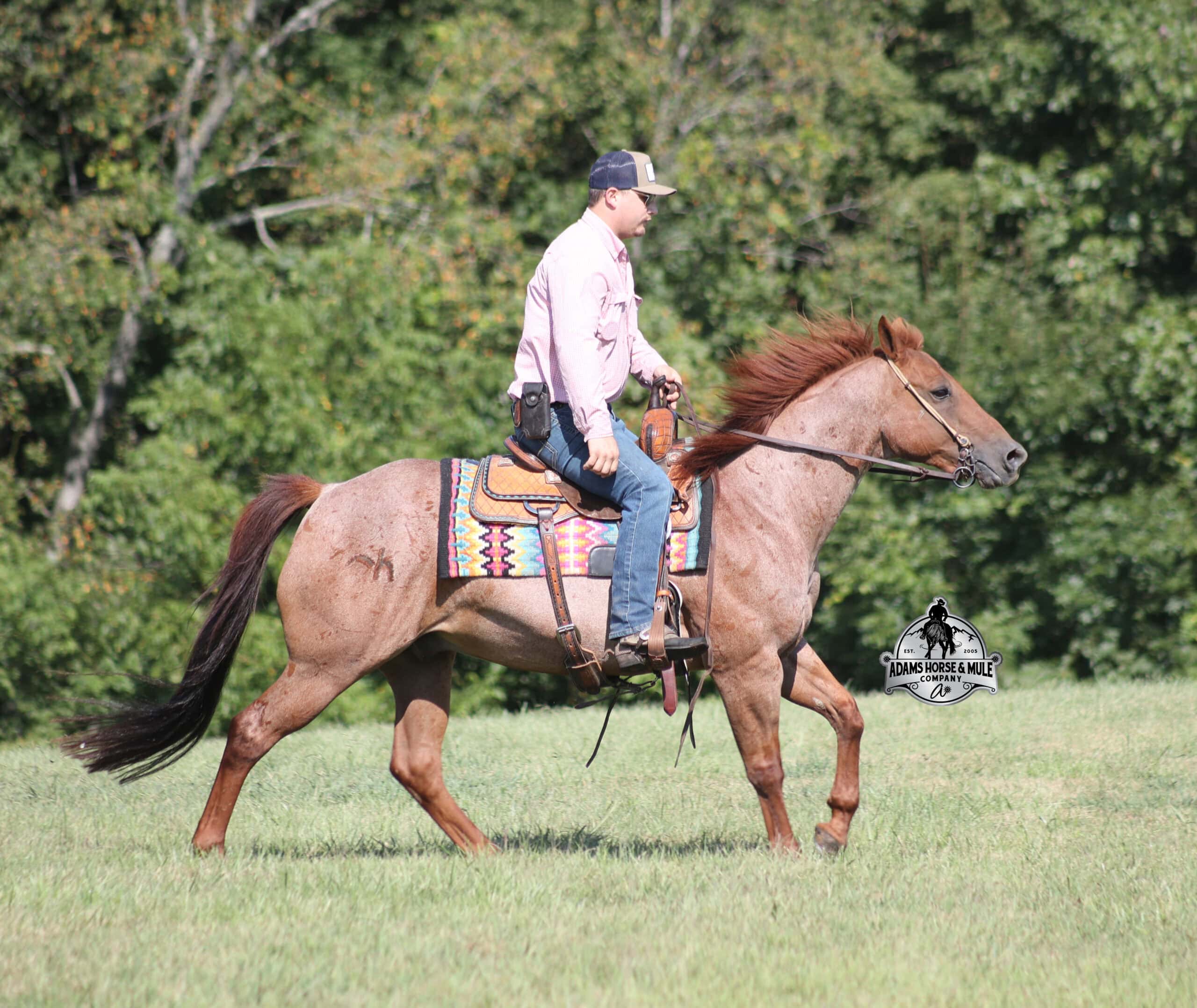 Simon is a stout and I mean Stout built 14.2H, Red Roan Quarter Horse Gelding that is 11 years old. Simon is a well traveled horse that has been ridden in several states and has been used as a ranch horse his whole life. From herding to sorting, pasture roping, loading trucks… he has done it all! Simon has been trail ridden in several states and been in the high country that is very rough and rocky. He will cross creeks, ditches, logs and navigate rough rocky areas. Simon has a smooth jog and a very smooth lope! He takes the correct leads, lopes nice cirlces, is one hand broke and reins around with ease. Simon has been ridden by our kids and is slow and easy with more whoa than go! He has been exposed to all kinds of wildlife such as deer or turkey or other animals like cows or dogs and will go anywhere that he is asked too. He has been ridden many miles in the mountains of Eastern Kentucky and encountered every obstacle possible on the trail. He will go up or down even the steepest slopes, across deep creeks, over downed trees, and over all types of rough terrain while still being sure footed. If you want to feel and look like a real deal cowboy/cowgirl just climb on Simon and he will make you look like one! If you have any questions call Eric 606-308-2461.