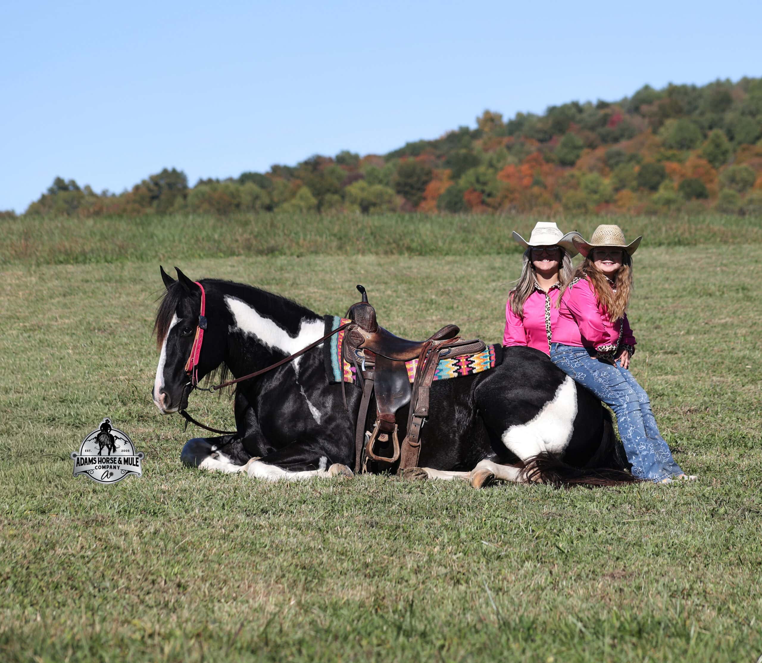 Summer Bandit, the only thing that this bandit would steal is a kiss!!! Bandit is a 15.1hh, 2016 model registered American Paint Horse, gelding with beautiful markings, he is stout built with muscles upon muscles with that long flowing mane and tail he belongs on the cover of a magazine… Bandit has been a special horse to us since we started him back in 2019 when he was a 3 year old. We knew from the start that he was a special horse! He was so smart, so friendly and easy going, that training was a breeze! Bandit cruised right through our natural horsemanship program where he learned to ride bridleless, learned to lay down and learned how to set. Since those days Bandit has been trail ridden countless miles. He has been camping and ridden in multiple states surrounding Kentucky, also including Pennsylvania and Missouri. Bandit has been ridden by all ages of beginners, all of our kids and he is totally safe and easy going! He has been ridden around the ranch, penned and sorted cattle. He has been hauled to rodeos, carried the flag for the grand entry, penned and sorted the bulls and our girls used him to give pony rides on where kids and adults lined up to take him for a spin! The lights, speakers, crowds… nothing phases him! Bandit is simple and easy to ride, he has a smooth trot, takes his leads in a smooth easy to set lope and will lope nice circles on a draped rein. He neckreins around, has a good stop, sidepasses to open/shut gates and backs with ease. Bandit has been exposed to all kinds of wildlife and is traffic safe. We have ridden him through town, the drive thru and past Wal-Mart as well. Bandit is great on the trails, as he has carried our kids through rocky terrain, across deep water, up/down slopes and across deadfall. He is not spooky and has been around tarps, wind dancers, bull whips and gun fire. In addition to riding western he has been ridden English and has been over the jumps! Bandit holds steady coming into the jumps and lands balanced. Bandit enjoys grooming time with the kids, where he will get scrubbed down, washed off and braided up, he is Mr. Personality! If you need a safe horse that the whole family can enjoy whether that be around the ranch, on the trails, over the jumps or one to just lay down and take a nap with… Bandit is available to ride and see in Mt. Vernon, KY until the week of the sale Feb. 16-21. Call for more info or if you have any questions 606-308-2461.