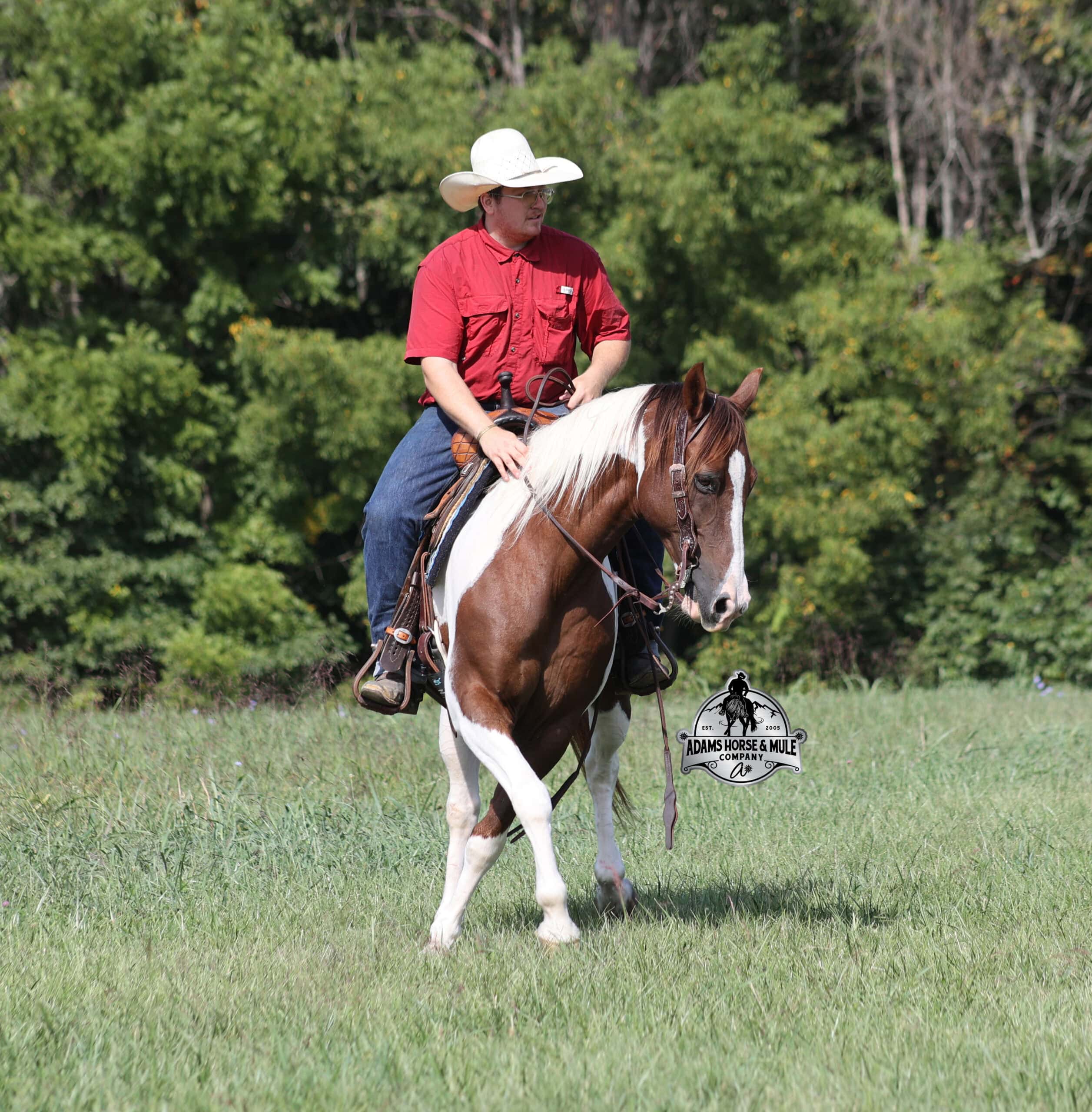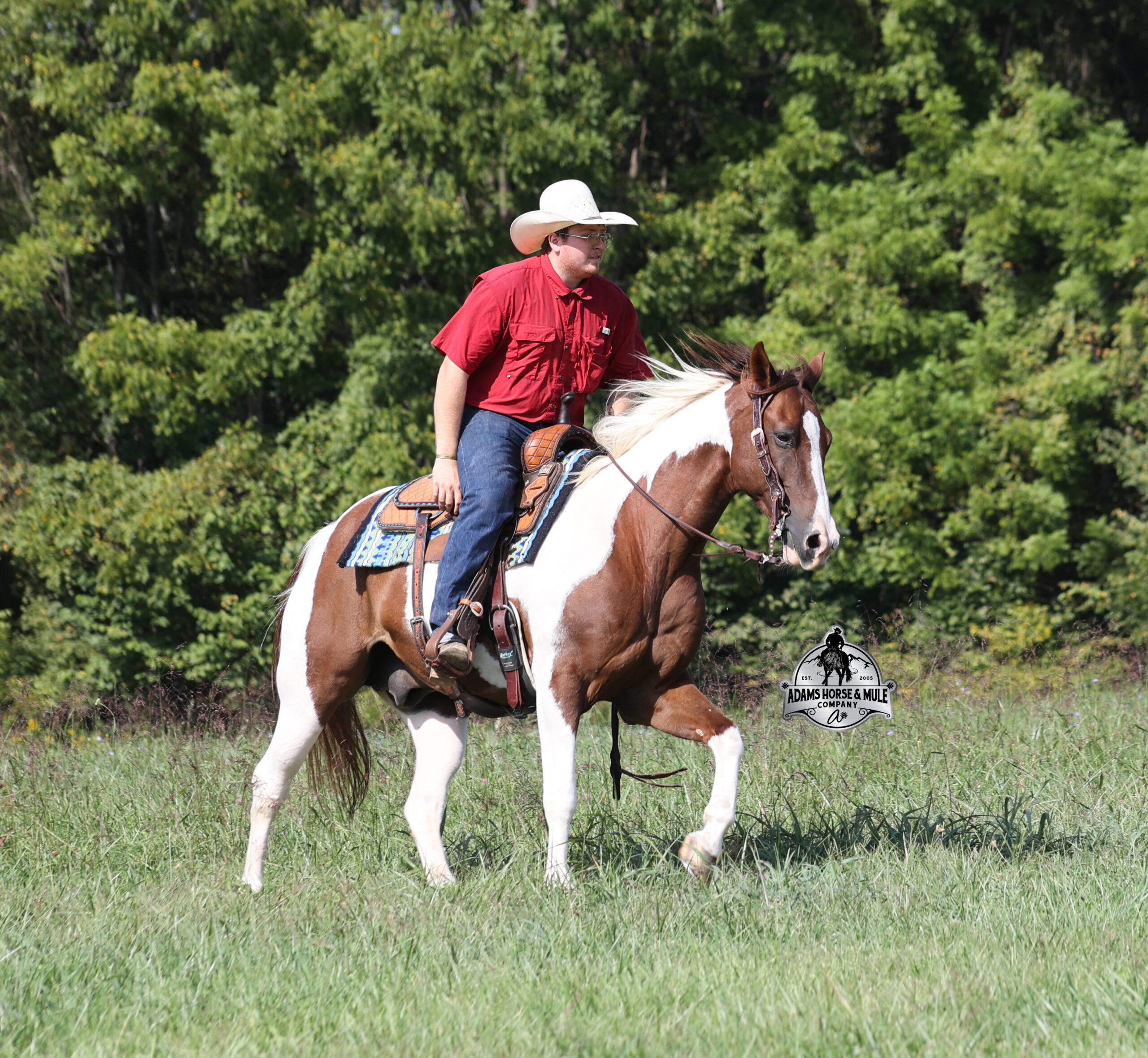 Meet Tonto, a super stout built paint gelding that is standing around 15.1hh. He will weigh 1300lbs, he is 8 years old and he has all the good looks, and (the best part) the mindset that anyone could ask for! Not only does he look cool, he has all of the other boxes checked as well… he is Mr. Personality, as friendly as they come, loves attention and is very calm natured. Tonto has been ridden by every member of our family all the way down to our 6 year old daughter and he will be the perfect horse for the whole family to enjoy! He has been ridden around the ranch, checked cows and pushed them around. Tonto is great on trails and he will cross creeks, ditches, logs and navigate rough rocky areas. He has a smooth jog, one of the slowest and softest lopes that you will find, a good stop and reins around as well! He has been exposed to all kinds of wildlife such as deer or turkey or other animals like cows or dogs and will go anywhere that he is asked too. He has been ridden many miles in the mountains of Eastern Kentucky and encountered every obstacle possible on the trail. He will go up or down even the steepest slopes, across deep creeks, over downed trees, and over all types of rough terrain while still being sure footed. Tonto is not cinchy, cold backed, does not crib or weave. He is a super cool horse that anyone is sure to love!!! Feel free to call Eric 606-308-2461 with any questions.