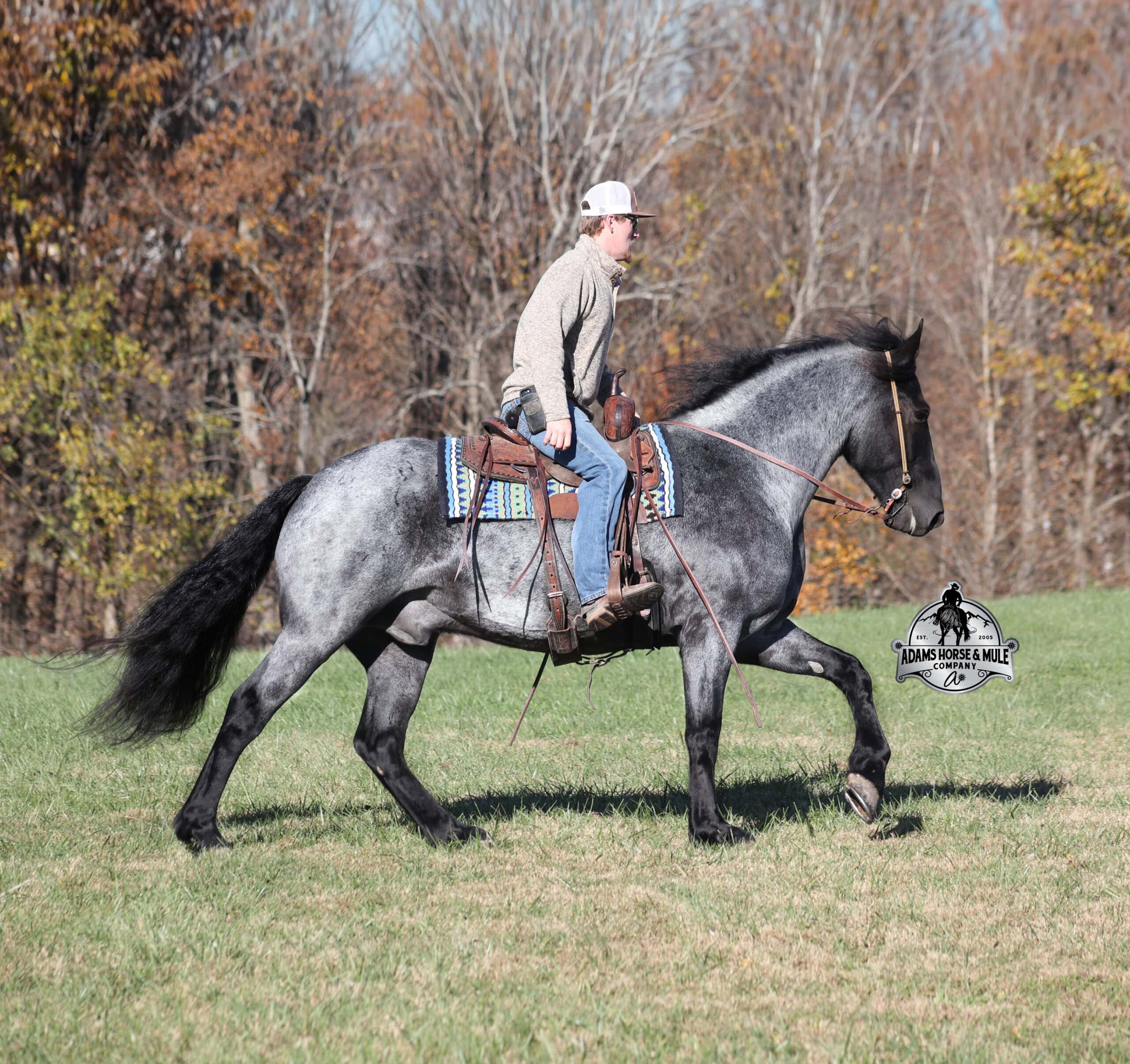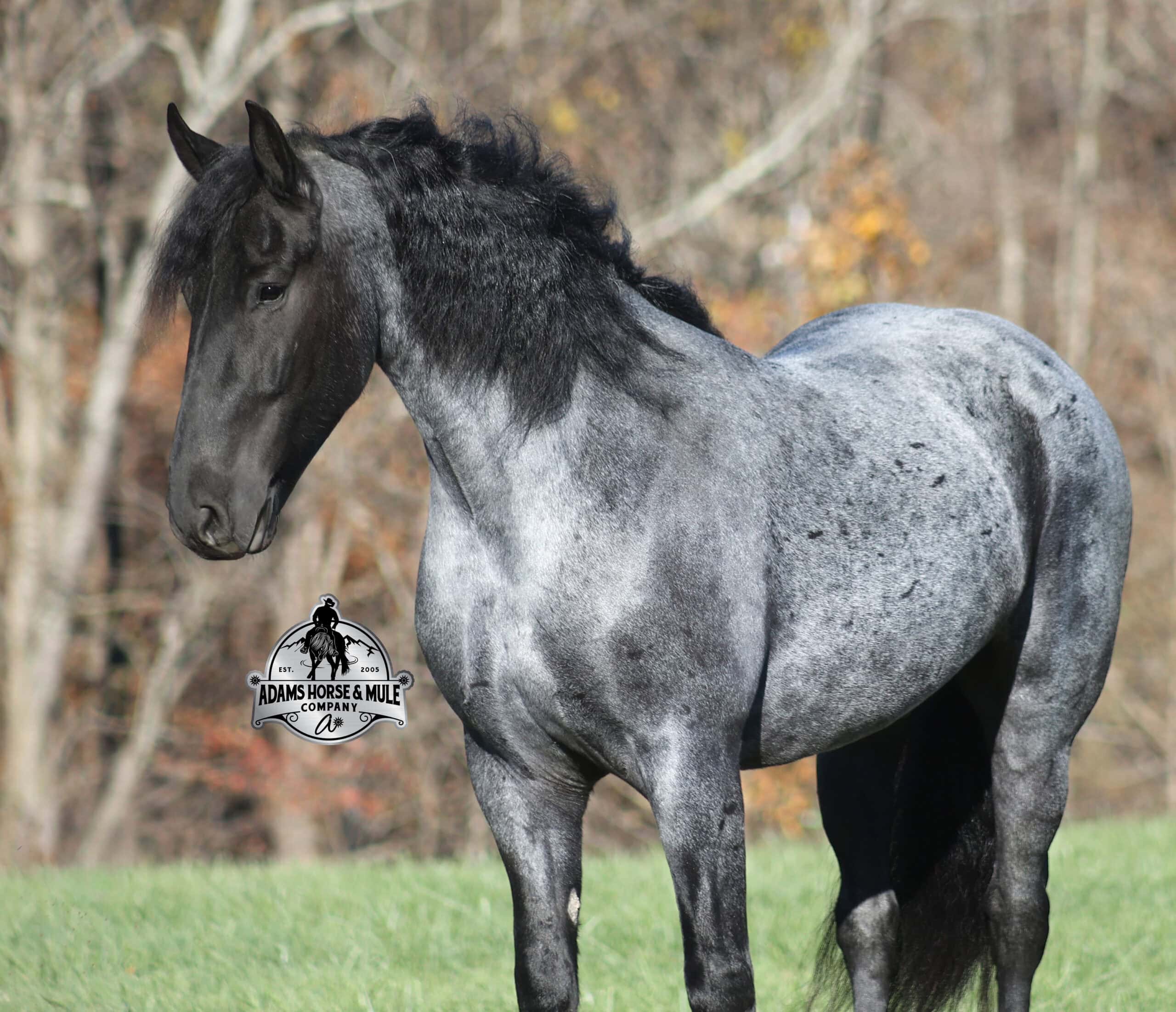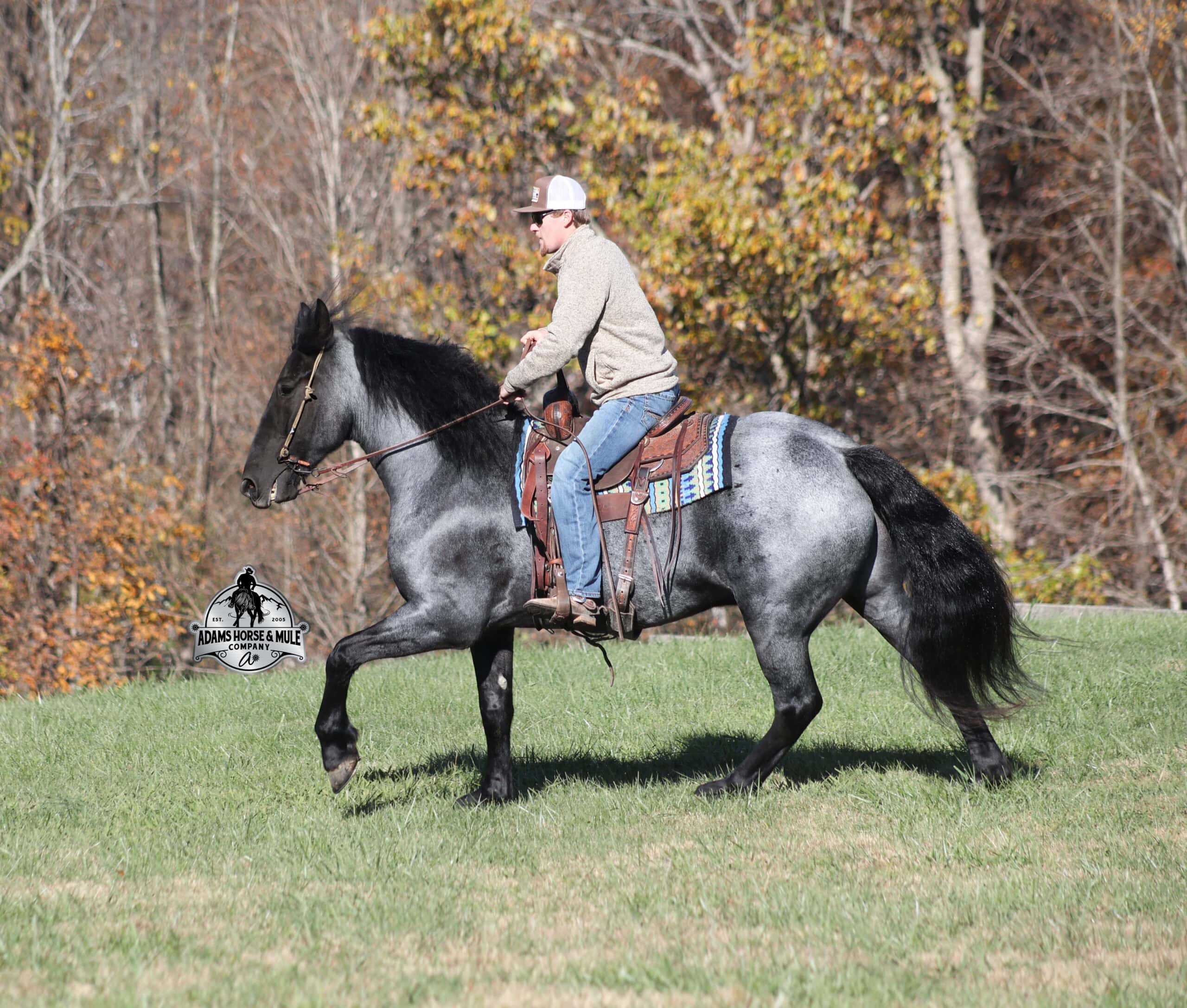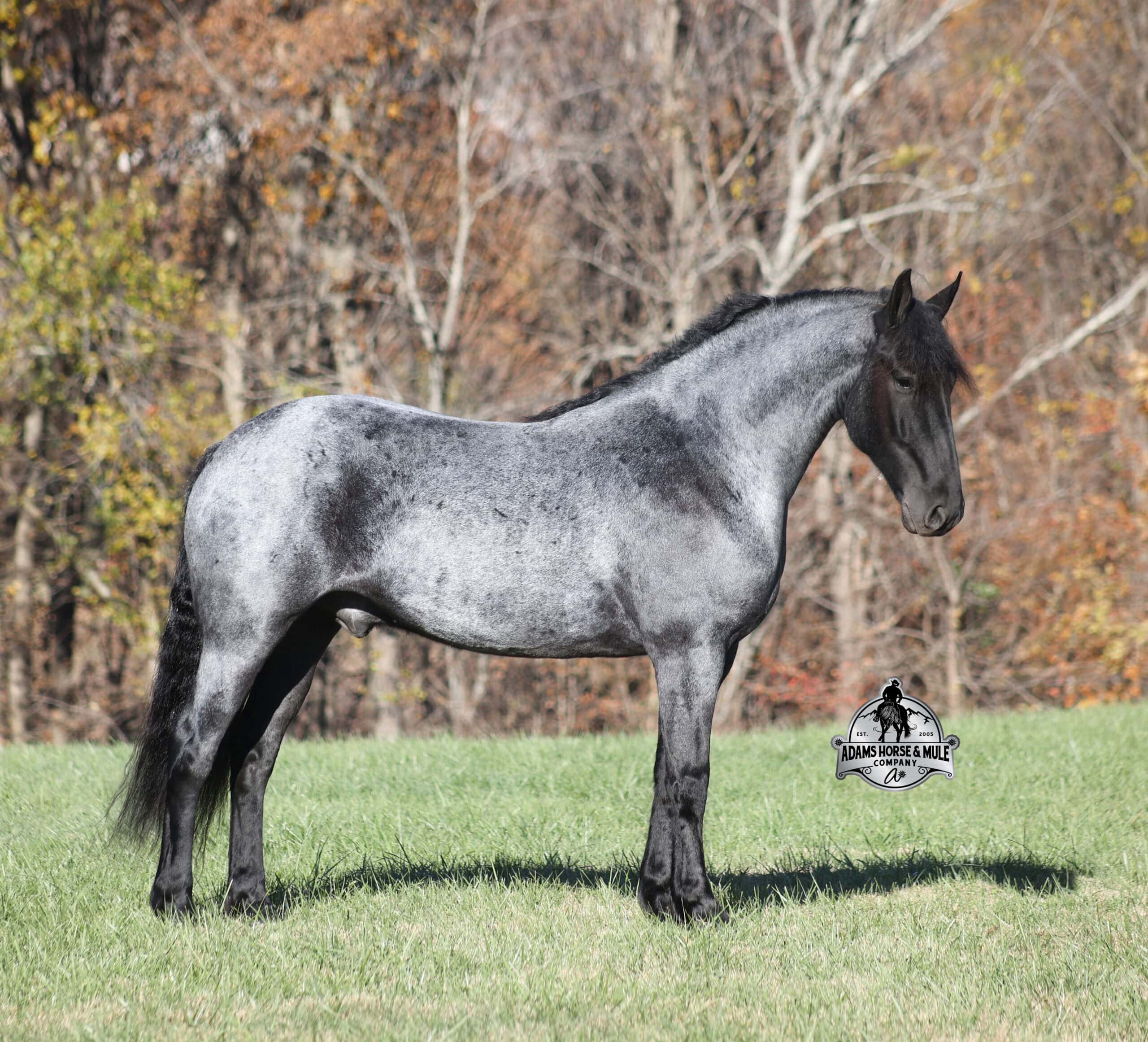 Sweet dreams are made of this!!! RRS Trumpin Travis is the big, stout, true blue roan registered Friesian Sport Horse Gelding!!! He is a 16.1h+ and is a 2019 model. Travis he is a very smooth mover as he, takes the correct leads, lopes nice circles, reins around and stops with ease! Travis is safe for any level or any age of rider!! He has been ridden by our kids with no issues. Travis has been ridden inside and out. He is good in the arena, he has been ridden down the highways and he is traffic safe. Travis is great on trails and he will cross creeks, ditches, logs and navigate rough rocky areas. He has been exposed to all kinds of wildlife such as deer or turkey and will go anywhere that he is asked too. He has been ridden many miles in the mountains of Eastern Kentucky and encountered every obstacle possible on the trail. He has been on several week-long camping trips. He hauls well and picketline ties also. He will go up or down even the steepest slopes, across deep creeks, over downed trees, and over all types of rough terrain while still being sure footed. Travis has no bad habits! In addition to riding, Travis has been drove single, double and in a 4 horse hitch pulling an old west stage coach! He has been worked in all types of farm machinery, has been drove through town, in parades and at rodeo venues. Travis’s mate (Trevor) is also available. You don’t want to miss this special horse! Feel free to call Eric 606-308-2461 with any questions.