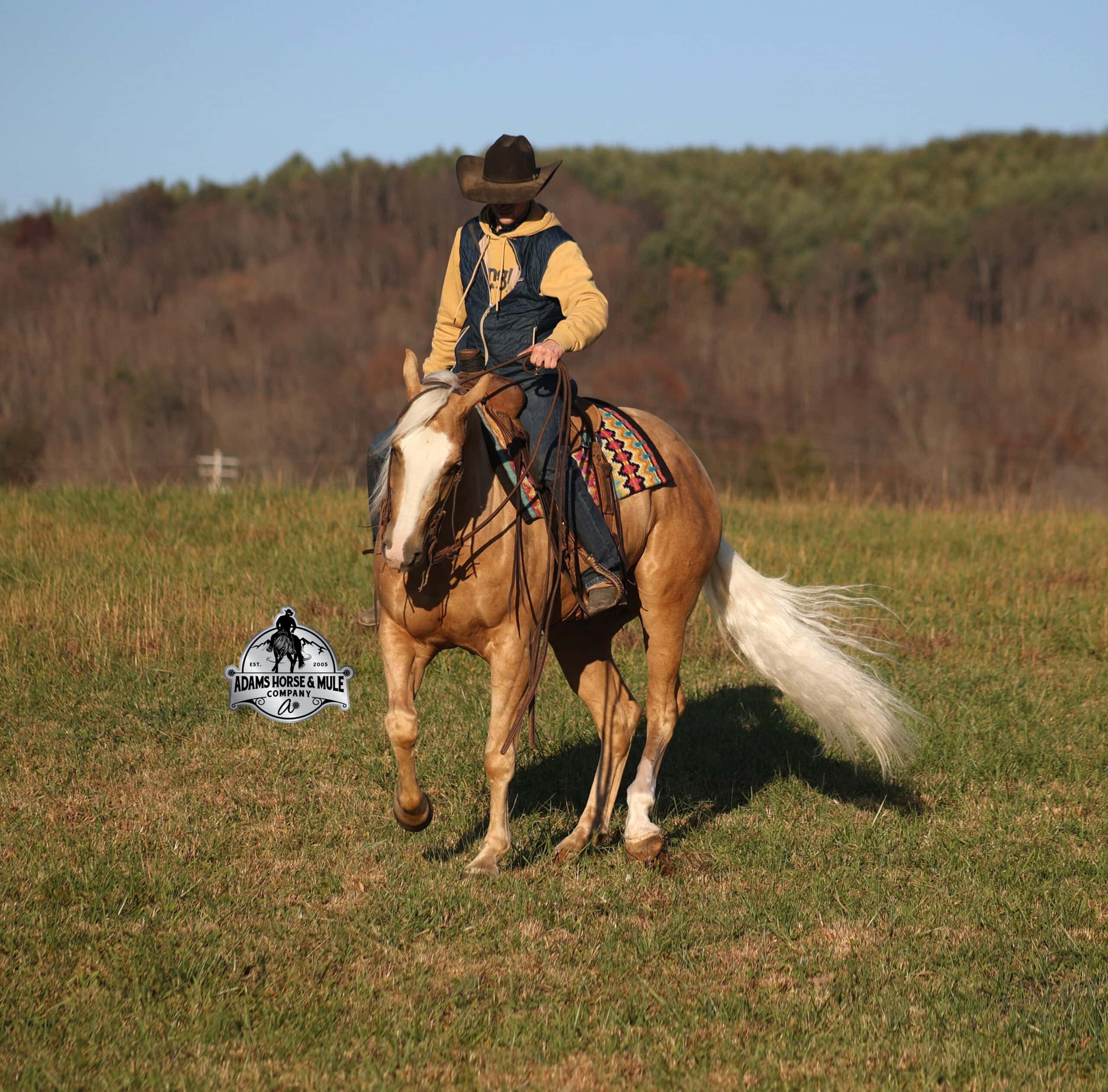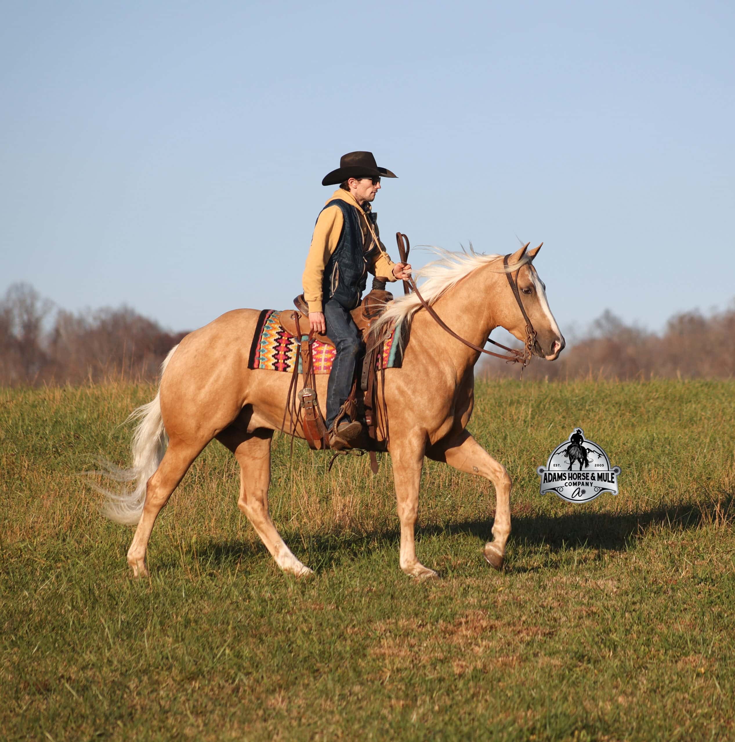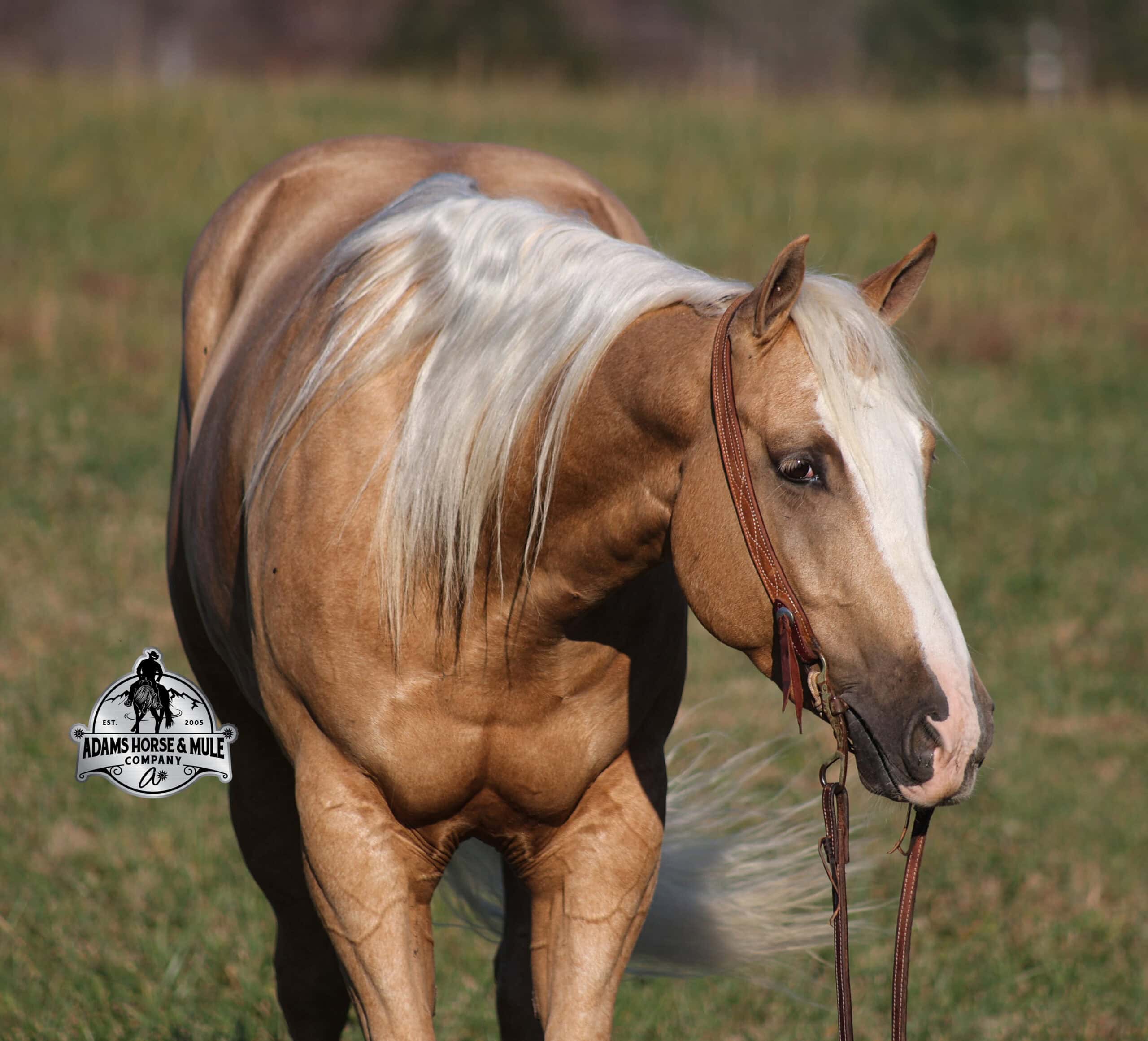 If Wrens was on the “Tinder” dating app, you’d certainly want to swipe up on his profile!!! This lover boy named Wrens Blue Moon is an amazing 15.3h, 2021 model, AQHA Reg, G-O-L-D-E-N Palomino, gelding that looks great and rides great too! Wren is stout enough to carry a bigger sized rider and gentle enough to carry the little ones as well! Wren has been used out on the ranch in all aspect of ranch work. From roping and doctoring to sorting, he has plenty of cow sense. He has been ridden around Rodeo venues, sorted and loaded the bulls. Lights, the announcers, crowd roaring… nothing phases him! Wren has been roped on out of the box and trails the roping dummy. Wren is totally user friendly to ride as he lopes slow and easy, with the reins draped, in perfect circles. He is very well trained and spins circles correctly both ways and slide stops… he has the moves to go along with the good looks! If the ranch work is done and you just want to go for a relaxing trail ride… steep slopes, rocky terrain, creeks, logs, ditches… he crosses it all with ease and is never in a hurry! He has been started jumping over the rails and logs too. Wren is a horse that can handle any task and will take care of the whole family! Eye appeal, Pedigree, Training, Experience, Versatility, Safety… his profile is complete and he is looking for his soul mate!!!