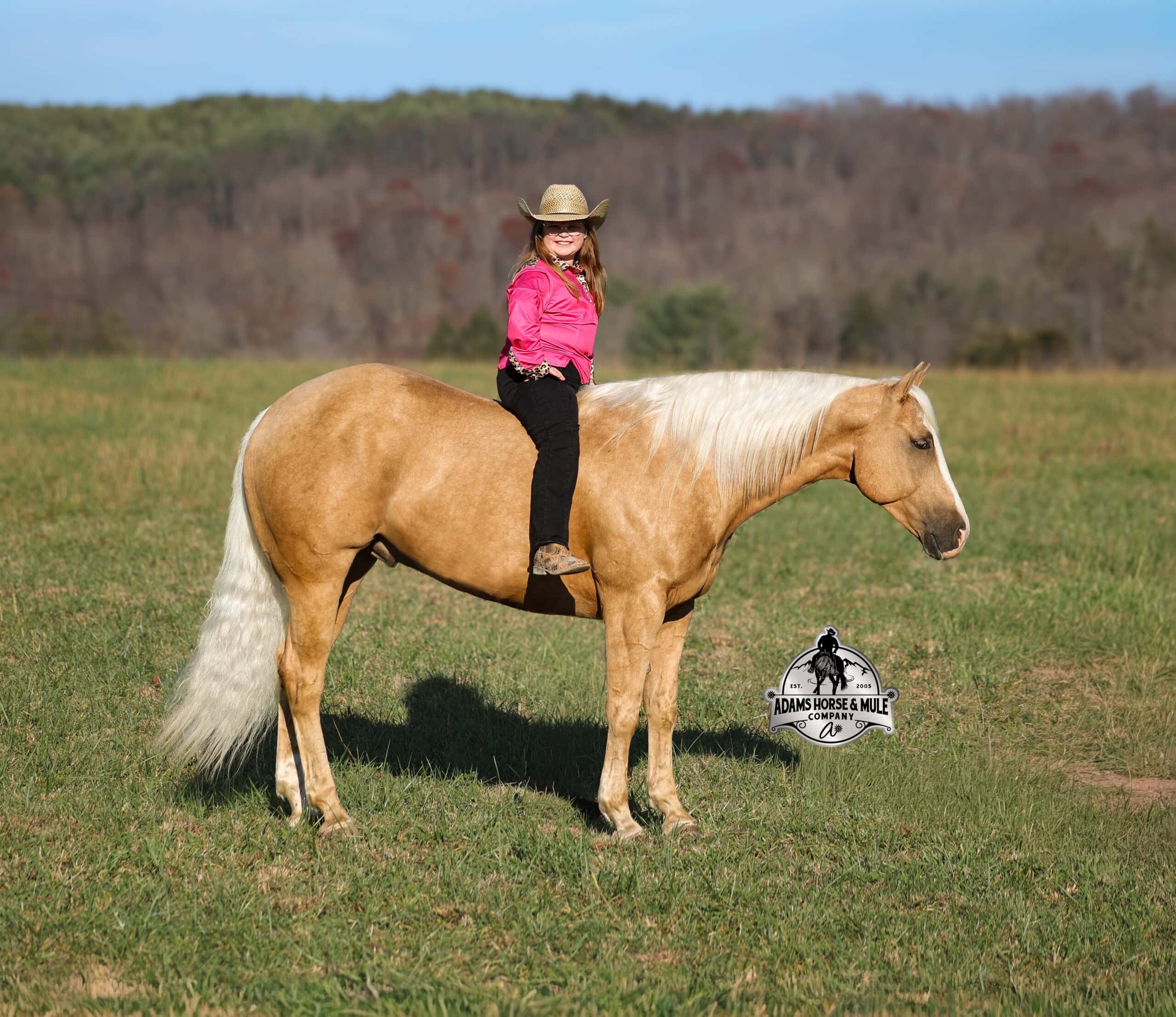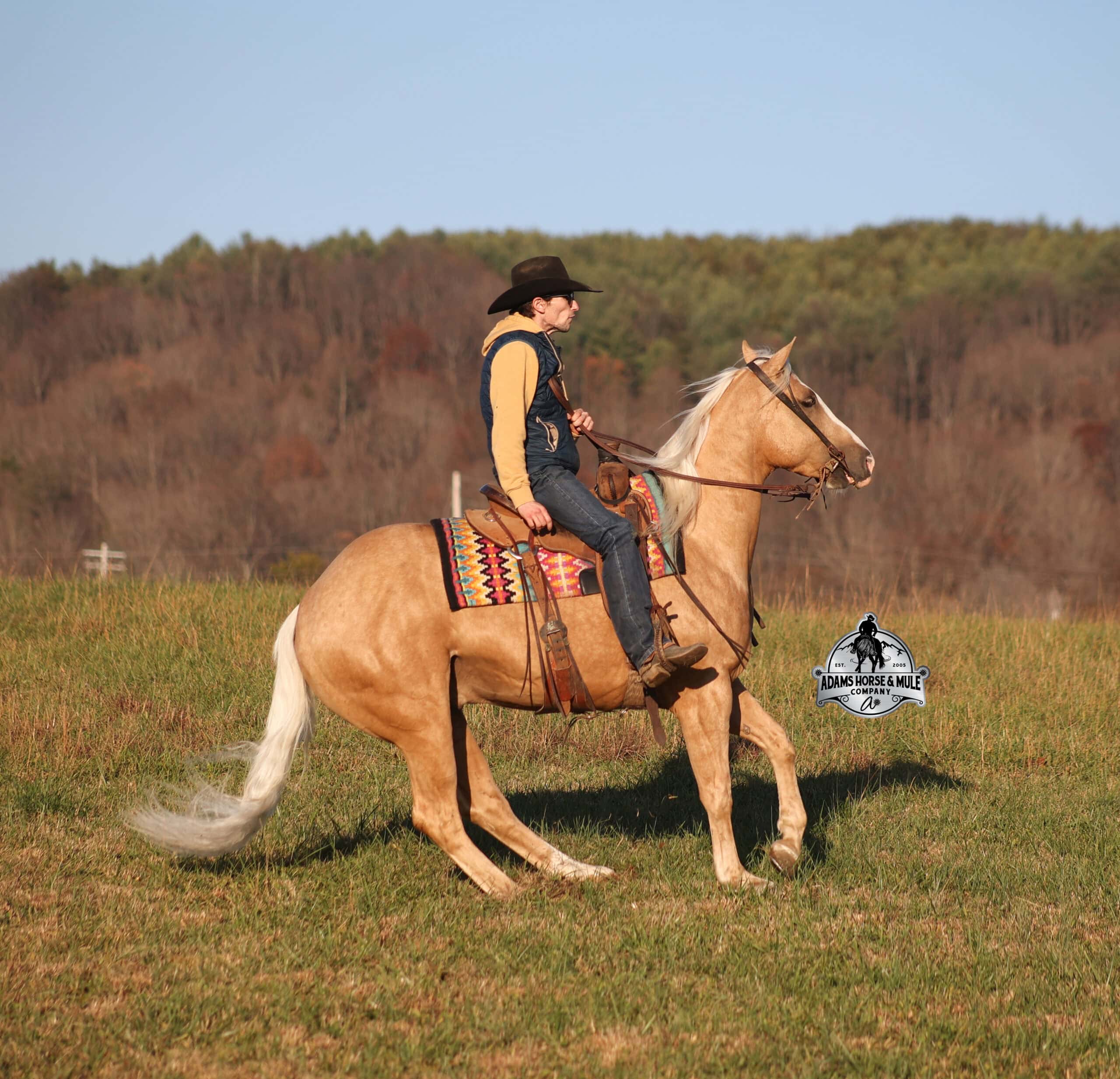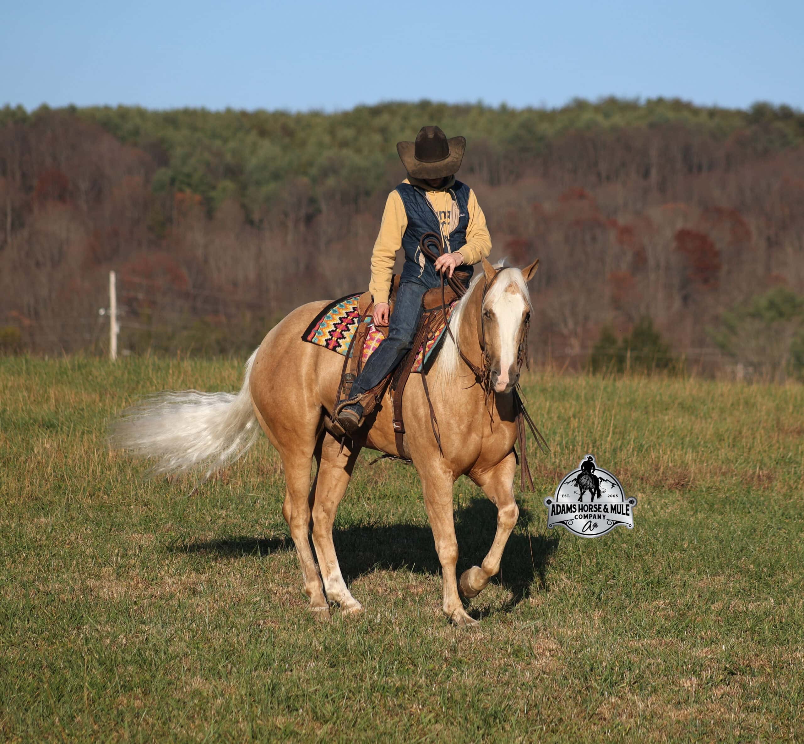 If Wrens was on the “Tinder” dating app, you’d certainly want to swipe up on his profile!!! This lover boy named Wrens Blue Moon is an amazing 15.3h, 2021 model, AQHA Reg, G-O-L-D-E-N Palomino, gelding that looks great and rides great too! Wren is stout enough to carry a bigger sized rider and gentle enough to carry the little ones as well! Wren has been used out on the ranch in all aspect of ranch work. From roping and doctoring to sorting, he has plenty of cow sense. He has been ridden around Rodeo venues, sorted and loaded the bulls. Lights, the announcers, crowd roaring… nothing phases him! Wren has been roped on out of the box and trails the roping dummy. Wren is totally user friendly to ride as he lopes slow and easy, with the reins draped, in perfect circles. He is very well trained and spins circles correctly both ways and slide stops… he has the moves to go along with the good looks! If the ranch work is done and you just want to go for a relaxing trail ride… steep slopes, rocky terrain, creeks, logs, ditches… he crosses it all with ease and is never in a hurry! He has been started jumping over the rails and logs too. Wren is a horse that can handle any task and will take care of the whole family! Eye appeal, Pedigree, Training, Experience, Versatility, Safety… his profile is complete and he is looking for his soul mate!!!